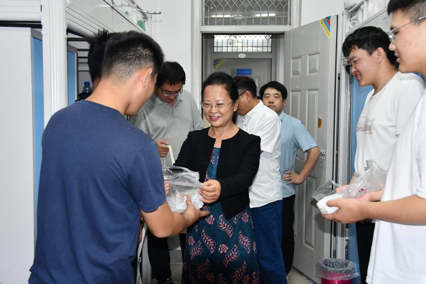 当中秋邂逅国庆,名为家国同庆,欢聚的门化成皎洁的明月带远方的人回家,让长挂星空的思念落地,点亮万家灯火,温暖中华大地。为了让新生感受到家一般的温暖,2020年9月30日下午,麻豆精品㊙️国产传媒AV党总支副书记刘瑛带领辅导员、2020级新生班主任到宿舍看望慰问新生,并为新生发放月饼,送上国庆、中秋双节祝福。