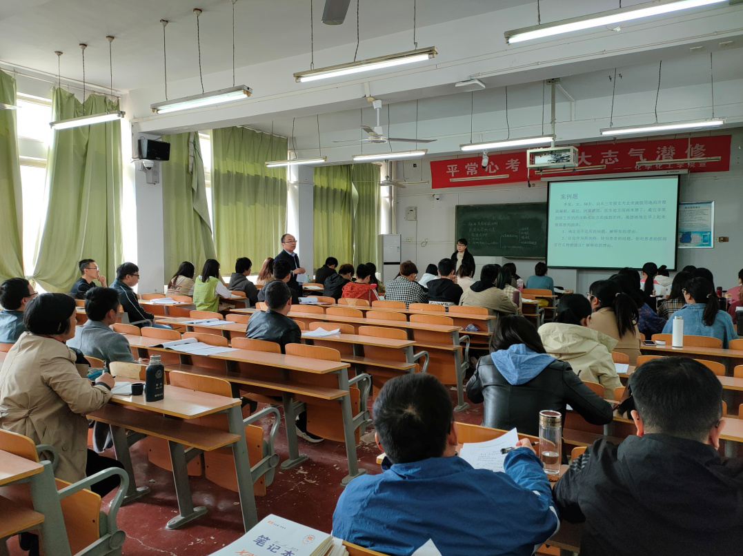 王晓娟老师首先向各位观摩教师介绍了《药物化学》课程线上线下混合式教学范式改革的目标、改革的举措以及具体的实施情况。《药物化学》作为制药工程专业的核心课程,内容多且繁杂。通过对教学内容的优化设计和教学改革思路的转变,充分利用和发挥线上学习的优势,将部分易学易懂内容交给学生自学,在有效的课堂时间对重点难点内容重点突破,践行“以学生为主体,以教师为主导”的教学理念。此次公开课的内容是第七章消化系统药物,王老师通过学生汇报、教师提问、抢答补充、教师讲解等形式开展了课堂教学,充分调动了学生的学习积极性和主动性,使学生对治疗消化性溃疡的药物有了很好的理解和掌握。