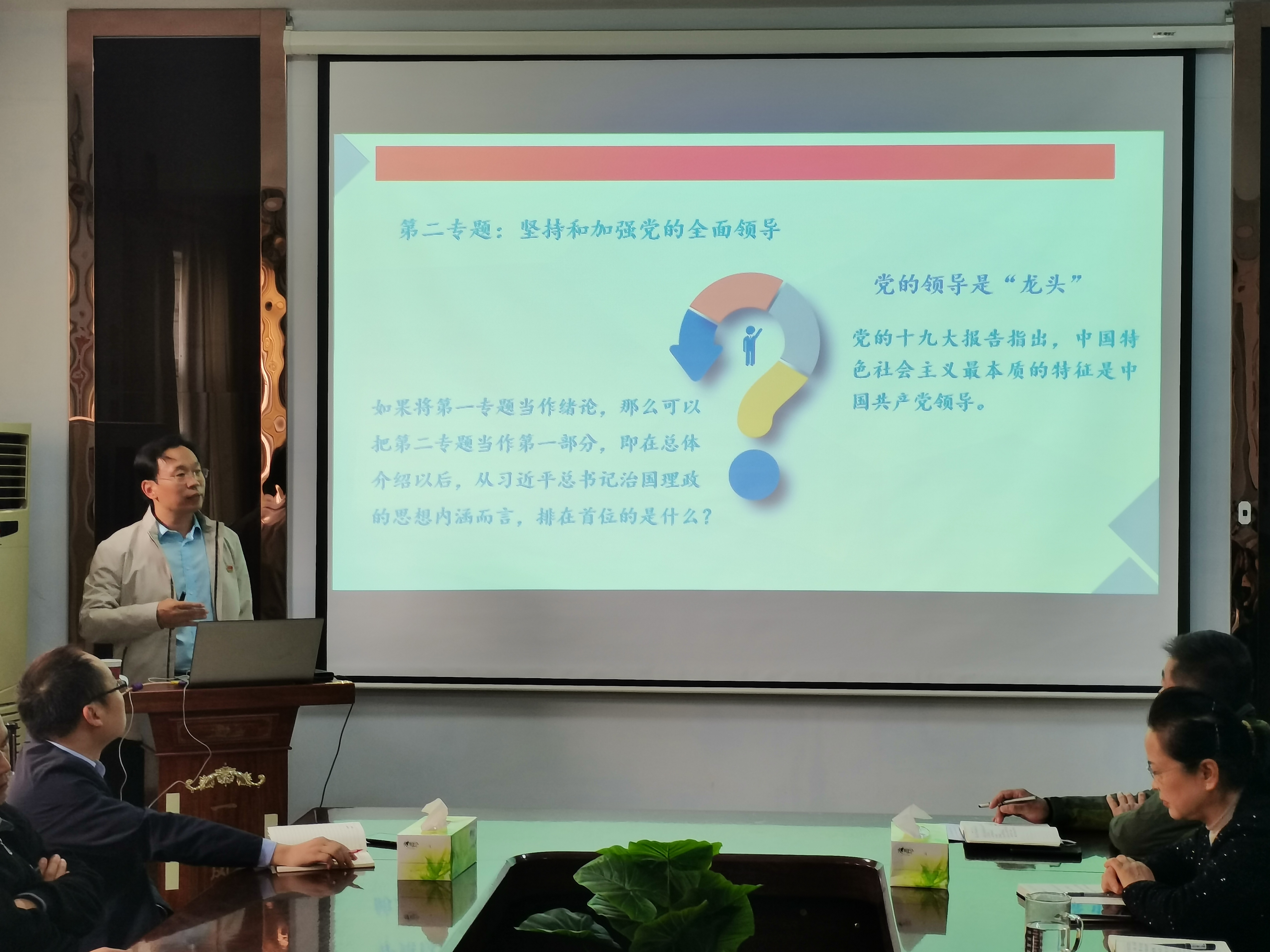 宣讲中,付召先教授分析了《习近平谈治国理政》第三卷产生的背景,深刻阐述了《习近平谈治国理政》第三卷的主要内容和创新点,指出了学习《习近平谈治国理政》第三卷的重大意义。付召先教授还建议在学习中要学原文读原著、结合“四史”学,不断把学习到的精髓融入到教学、育人中。