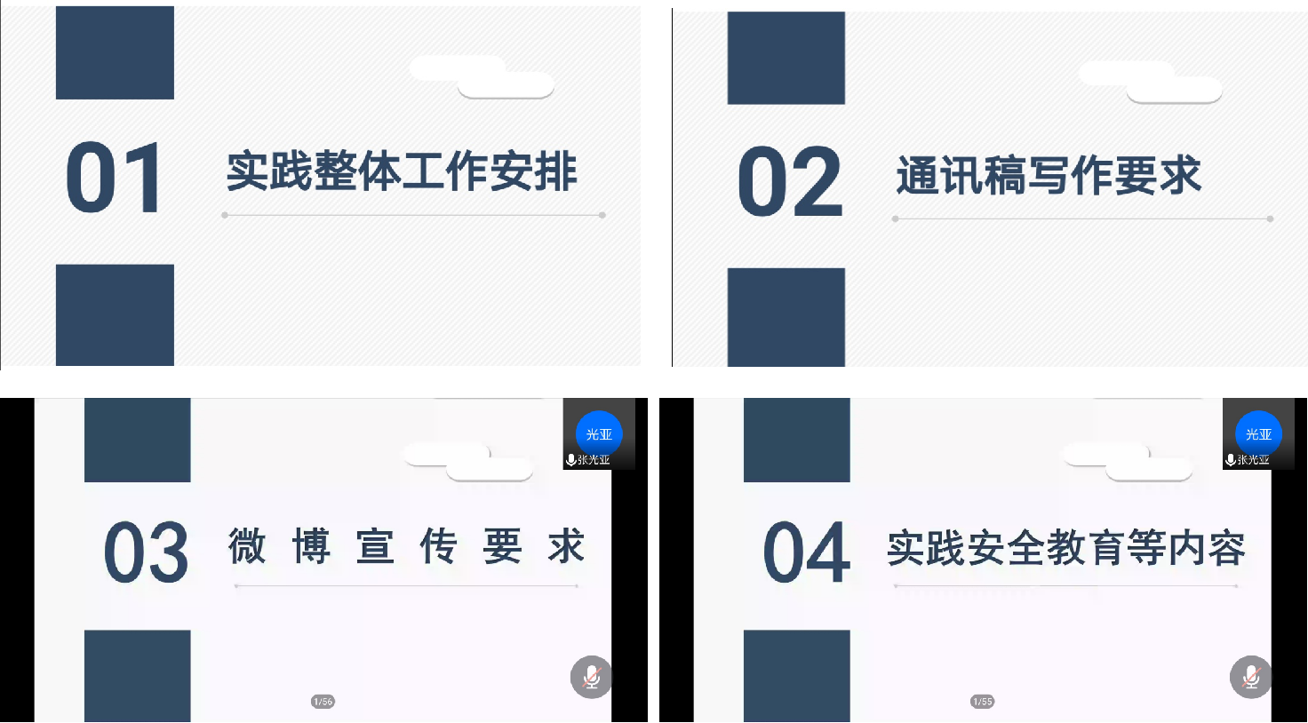 在此次寒假三下乡培训会上,负责人从实践活动整体工作安排、通讯稿写作要求、微博宣传要求以及实践安全教育等内容展开了系统的培训。负责人首先指出,整体工作安排分为立项、培训、实施、总结四个阶段,接着其就为什么要写通讯稿、怎么写通讯稿、通讯稿的常见问题以及通讯稿照片排版四个方面讲解通讯稿写作要求。之后负责人又从微博文字、话题、图片三方面对微博宣传的要求详细讲解。最后,负责人重点强调,疫情防控工作仍是重中之重,在开展在活动的同时,一定要做好个人安全防护,在保证安全的前提下,有序开展各项活动。