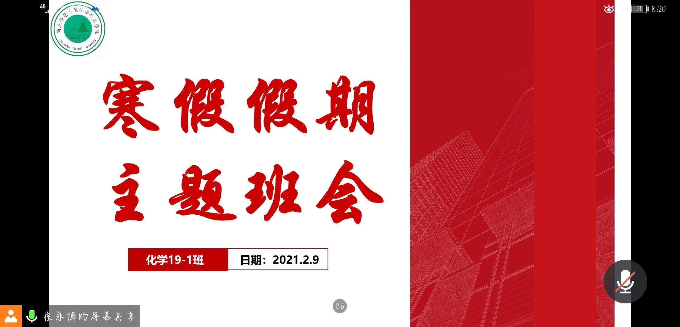 为使同学们更加深入学习习近平总书记近期重要讲话精神、积极制定并完成寒假学习生活目标、增强安全意识,2月9日晚上20:30,麻豆精品㊙️国产传媒AV化学19-1班于腾讯会议举行了寒假假期主题教育班会。化学19-1班班主任张银堂以及全班同学参加。