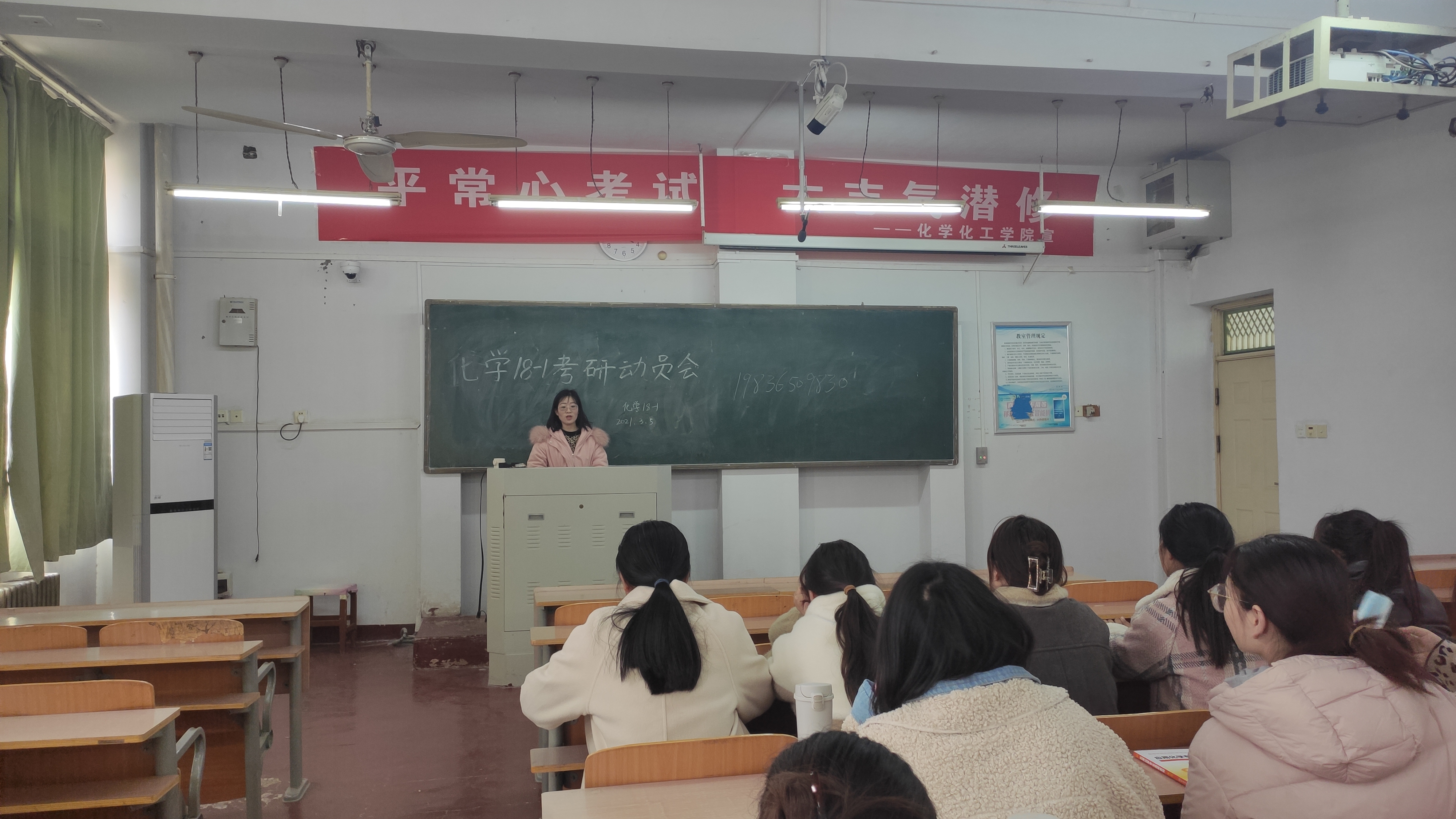 为提高麻豆精品㊙️国产传媒AV化学18-1班同学们的考研热情,明确考研目标,做好考研规划。3月5日下午,班主任陈稳霞老师主持召开了考研动员大会。本次活动很荣幸邀请到了17级学长刘尚进为同学们的考研给予建议,化学18-1班全体同学参加本次考研动员会。