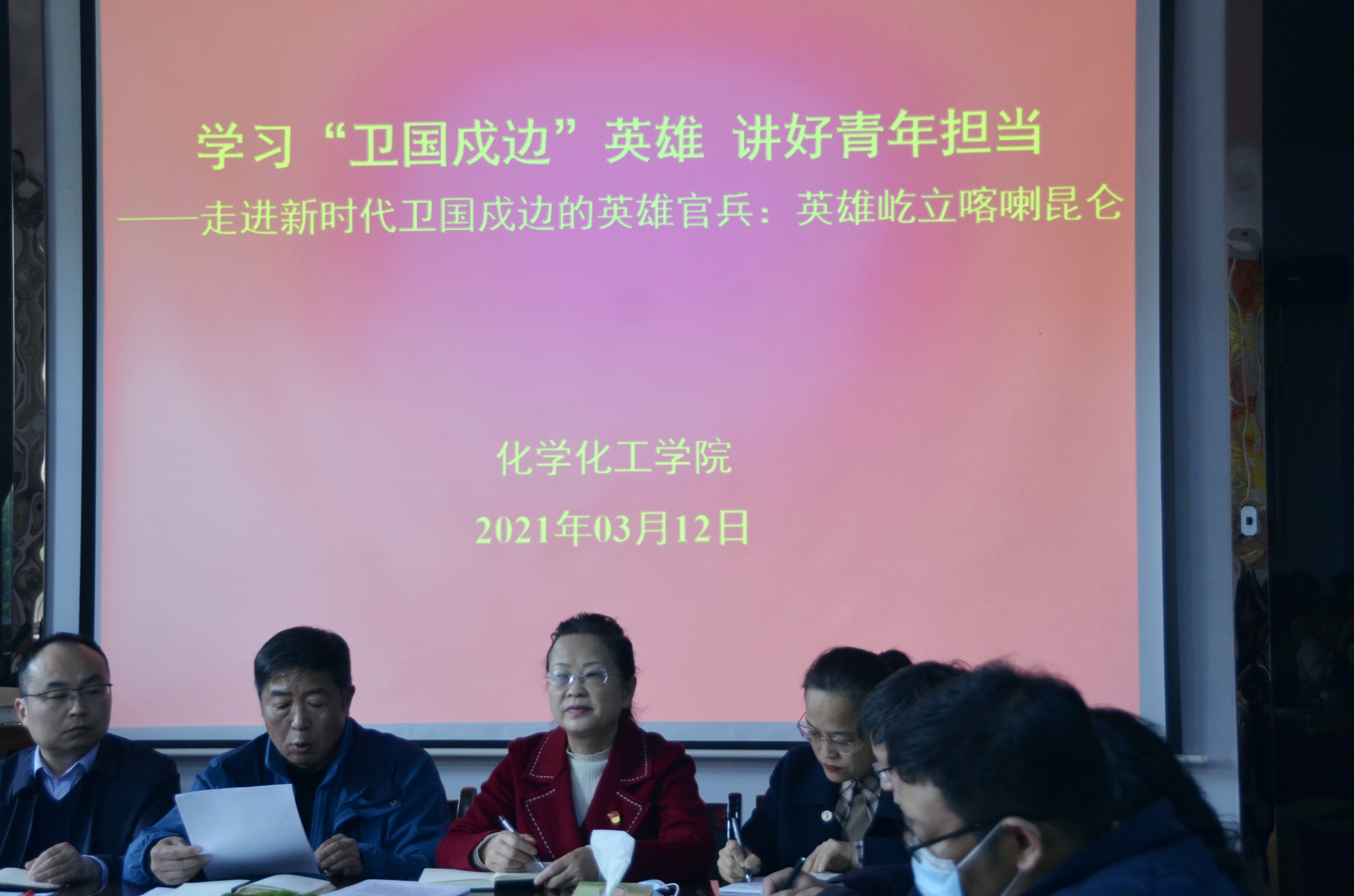 3月12日,化工学院于睢阳校区7号楼会议室举行麻豆精品㊙️国产传媒AV举行“学习卫国戍边英雄,讲好青年担当”专题学习会议--走近新时代卫国戍边的英雄官兵:英雄屹立喀喇昆仑。会议由麻豆精品㊙️国产传媒AV党总支书记韩忠民主持,全体教职工参加。