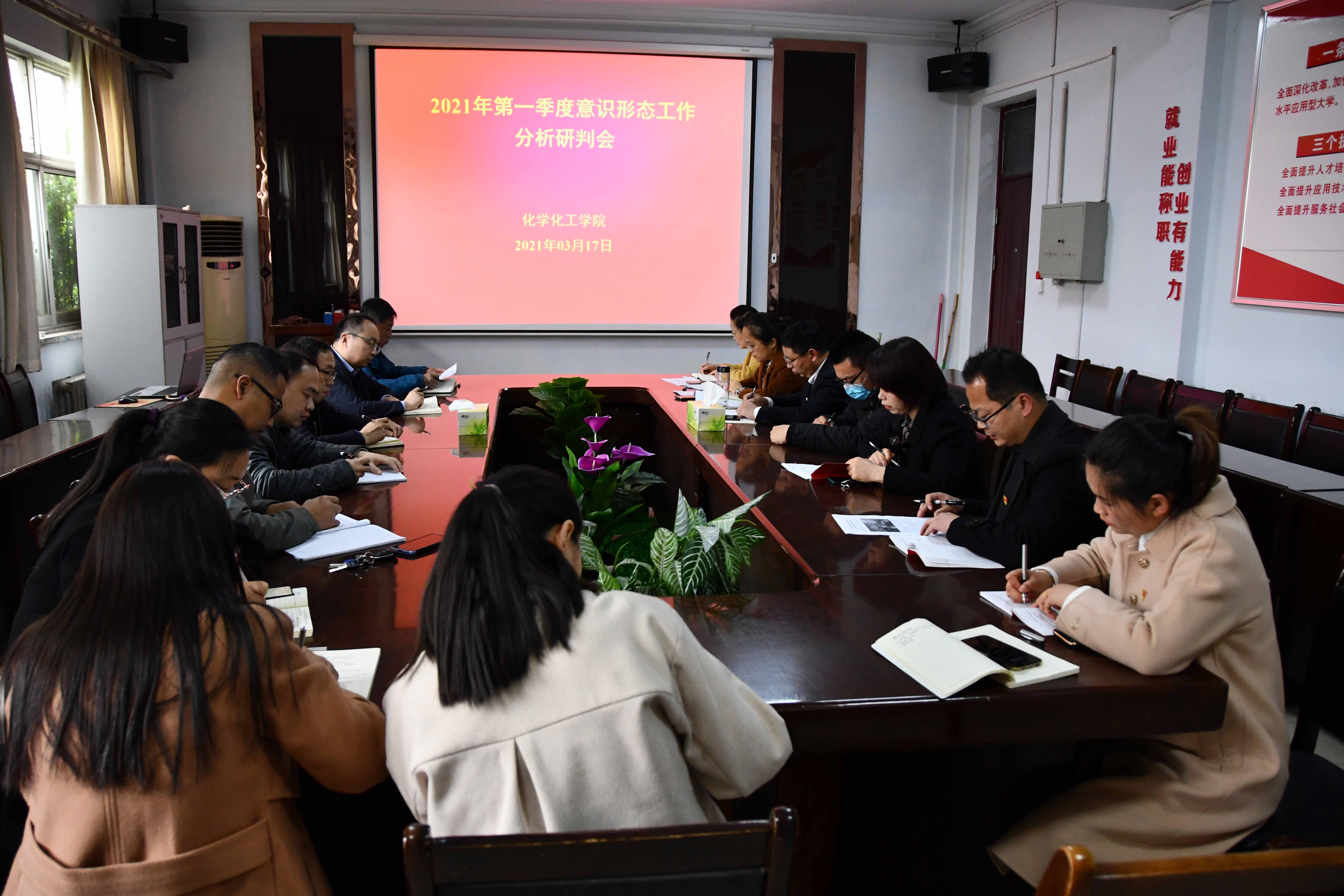 3月17日下午,麻豆精品㊙️国产传媒AV党总支于7号楼会议室召开2021年第一季度意识形态工作分析研判会。学院领导班子、党支部书记、办公室主任、教学办主任、辅导员参加会议。院党总支书记韩忠民主持会议。