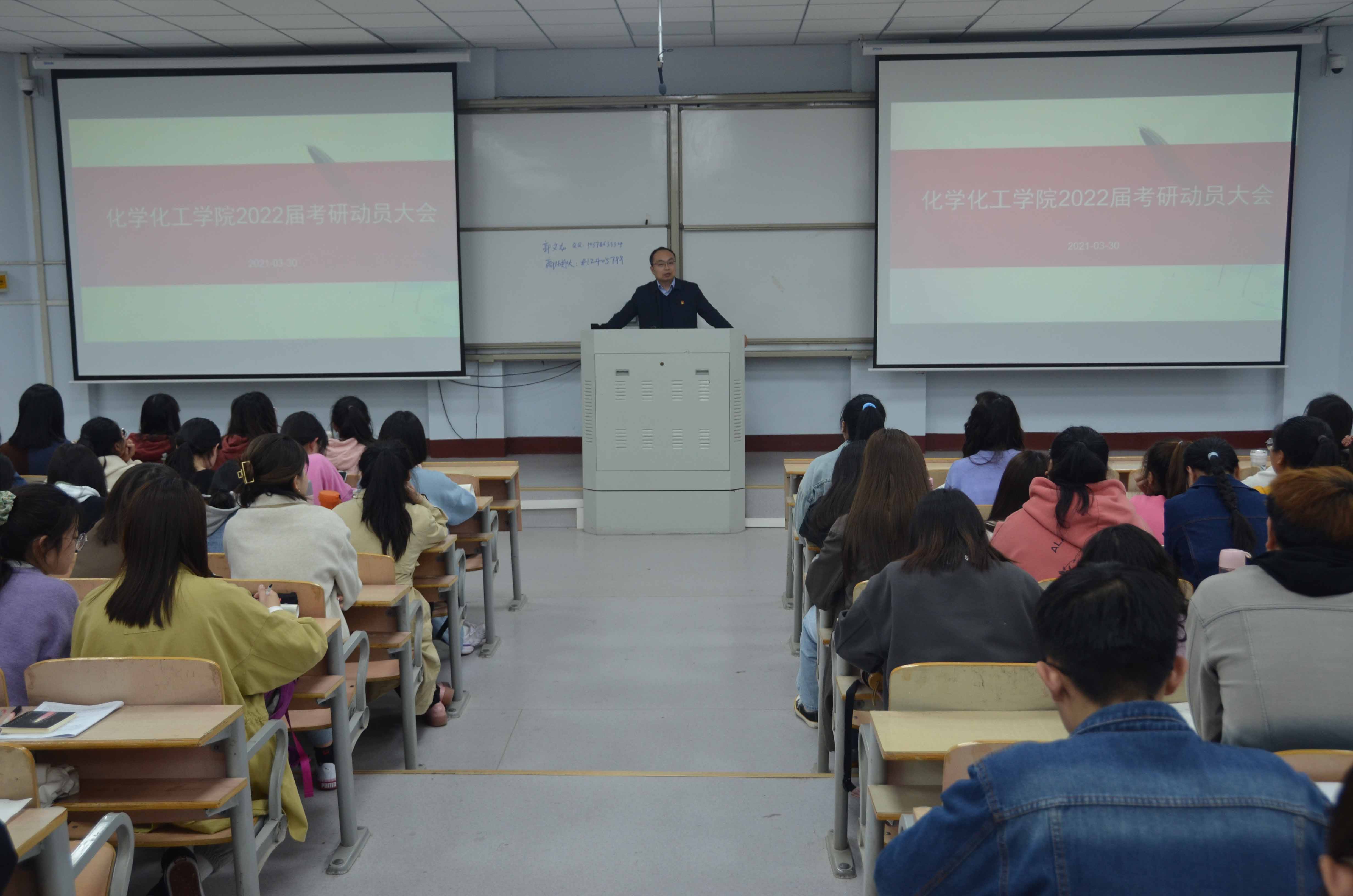 3月30日,麻豆精品㊙️国产传媒AV在1号教学208教室召开2022届毕业生考研动员大会。副院长孟团结、学生办公室副主任史展、2018级班主任、2017级考研学生代表及2018级全体学生参加了动员大会,会议由史展主持。