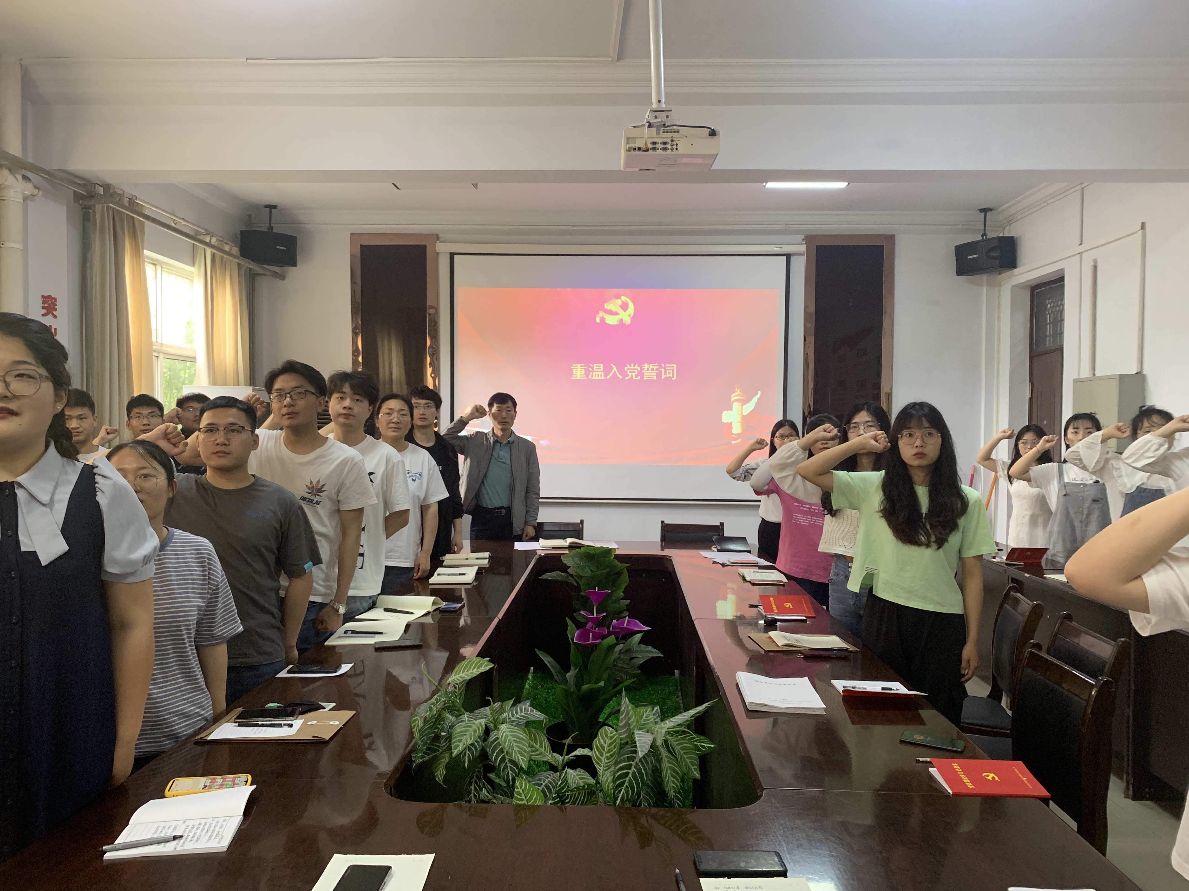 会议伊始,全体起立,奏唱国歌。刘瑛向与会党员传达了《关于做好2012届毕业生党员组织关系转移工作的通知》文件精神,强调了组织关系转移注意事项,并嘱托毕业生党员珍惜在校的每一天,站好最后一班岗,继续为同学做好服务,配合学院、老师做好毕业生离校相关工作。随后,学生第二党支部毕业生党员代表李远洋带领大家重温了入党誓词。最后,李海涛为大家上了一堂《在“学史崇德”中提升精神境界》党课。