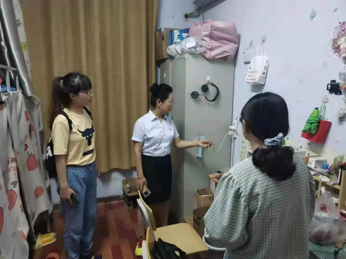 同时,校工会副主席刘瑛带领团总支副书记、学工办副主任、辅导员、班主任对学生宿舍开展了全面、仔细的检查。排查过程中,老师们逐个走访学生宿舍,深入了解宿舍具体情况,全面检查了是否存在飞线充电、使用违规电器、豢养宠物、卫生脏乱差等情况。发现问题,立行立改,及时排除安全隐患,确保学生安全。
