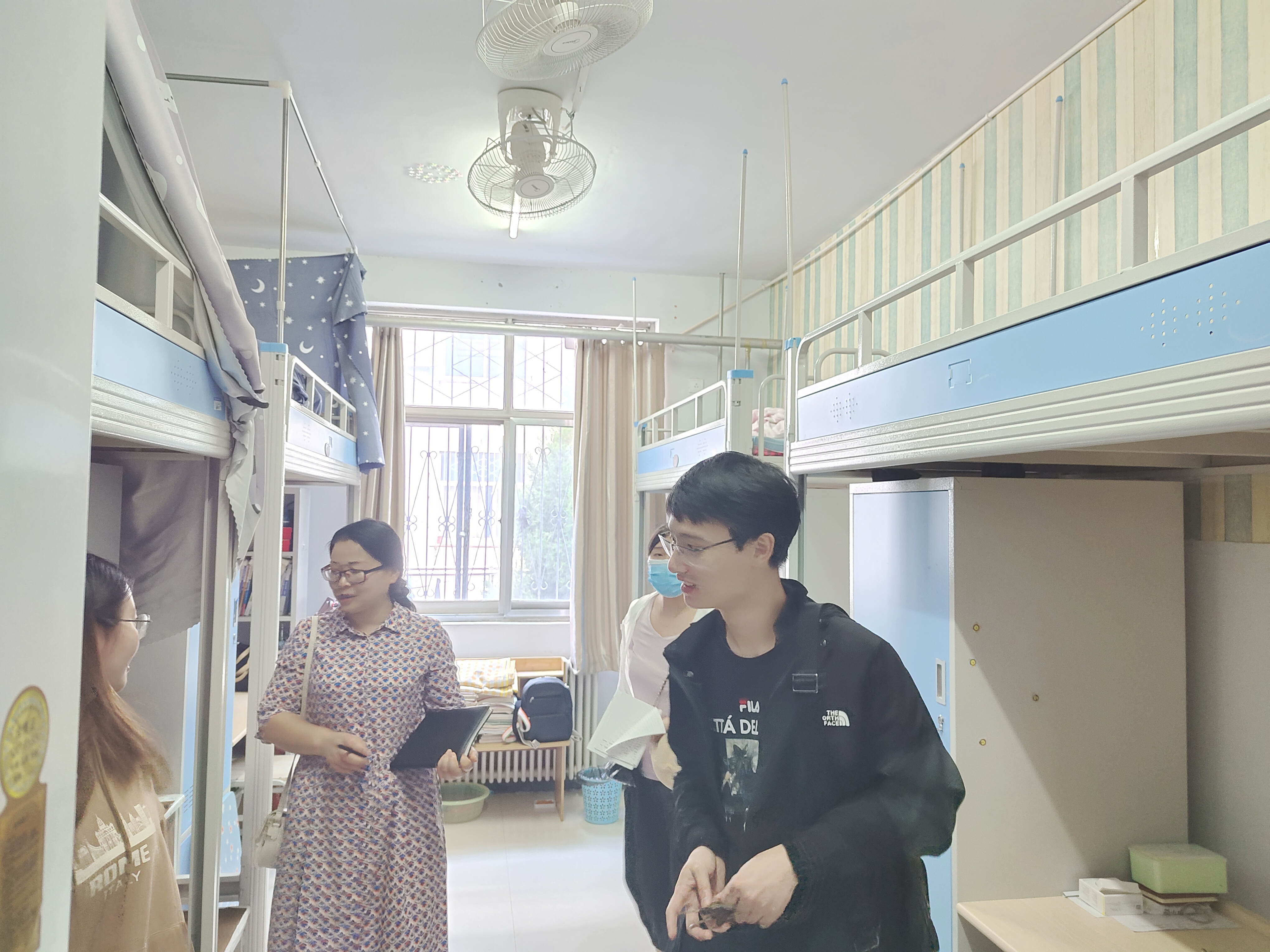 为了解学生生活、学习情况,提高学生安全防范意识。9月30日,学院党委副书记张颜梅带领各年级辅导员开展暑期学生宿舍安全大检查活动。