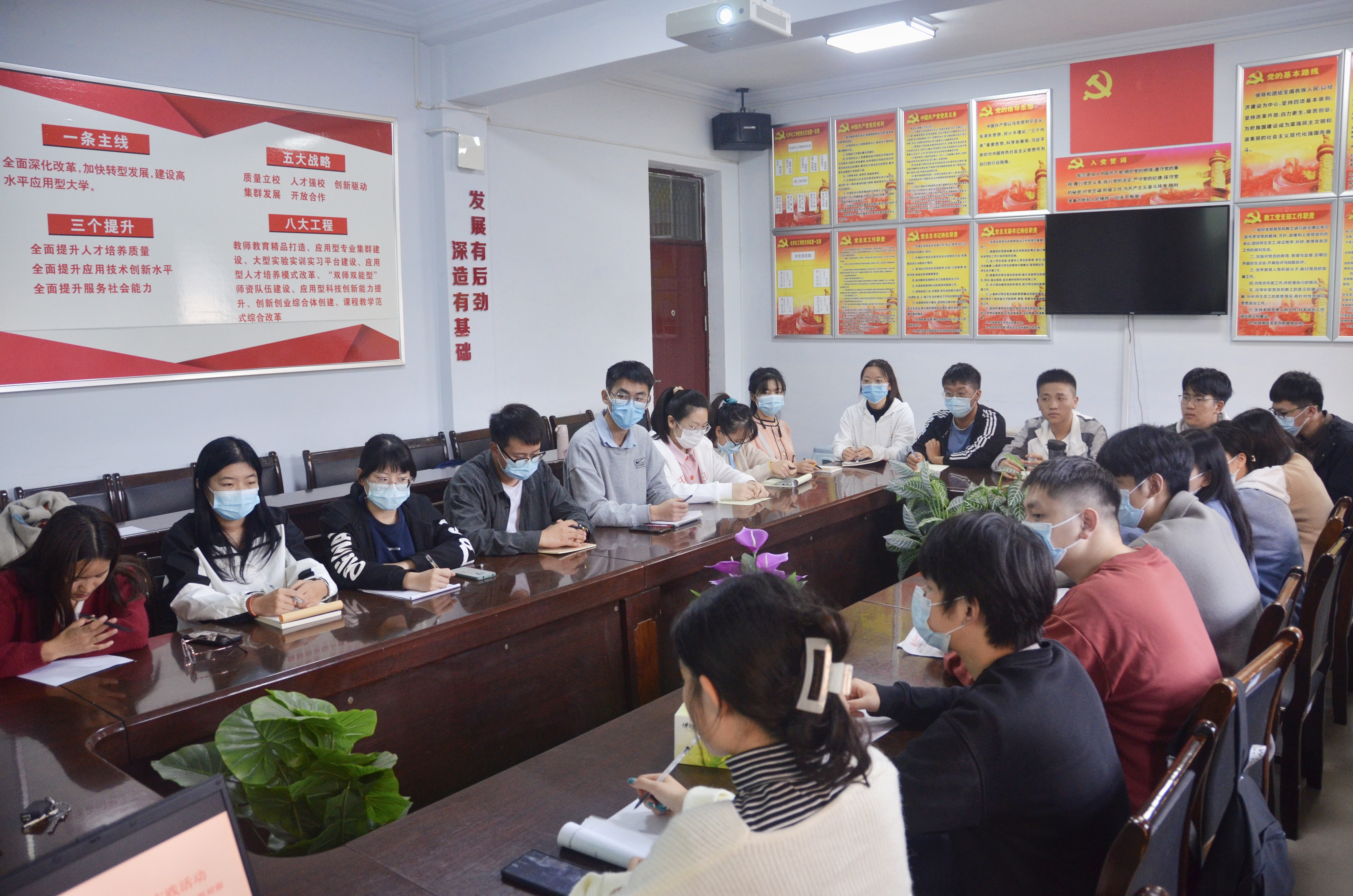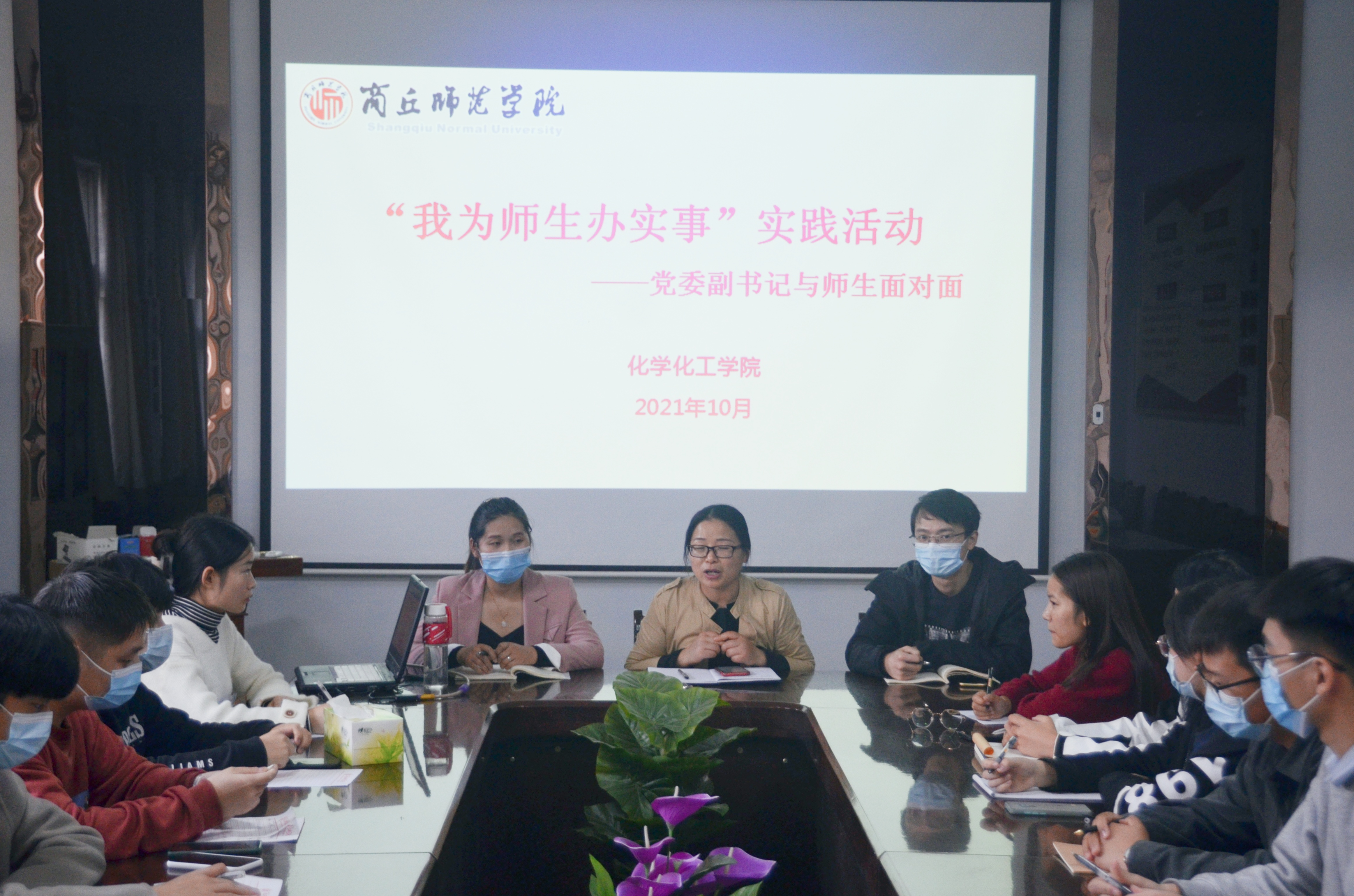 为号召广大师生学党史、悟思想、办实事、开新局,将党史学习教育与服务师生相结合,10月13日下午5点,麻豆精品㊙️国产传媒AV于睢阳校区七号楼会议室召开“我为师生办实事”实践活动。党委副书记张颜梅主持,学工办副主任史展、辅导员李宁娅以及19级、20级班委参加。
