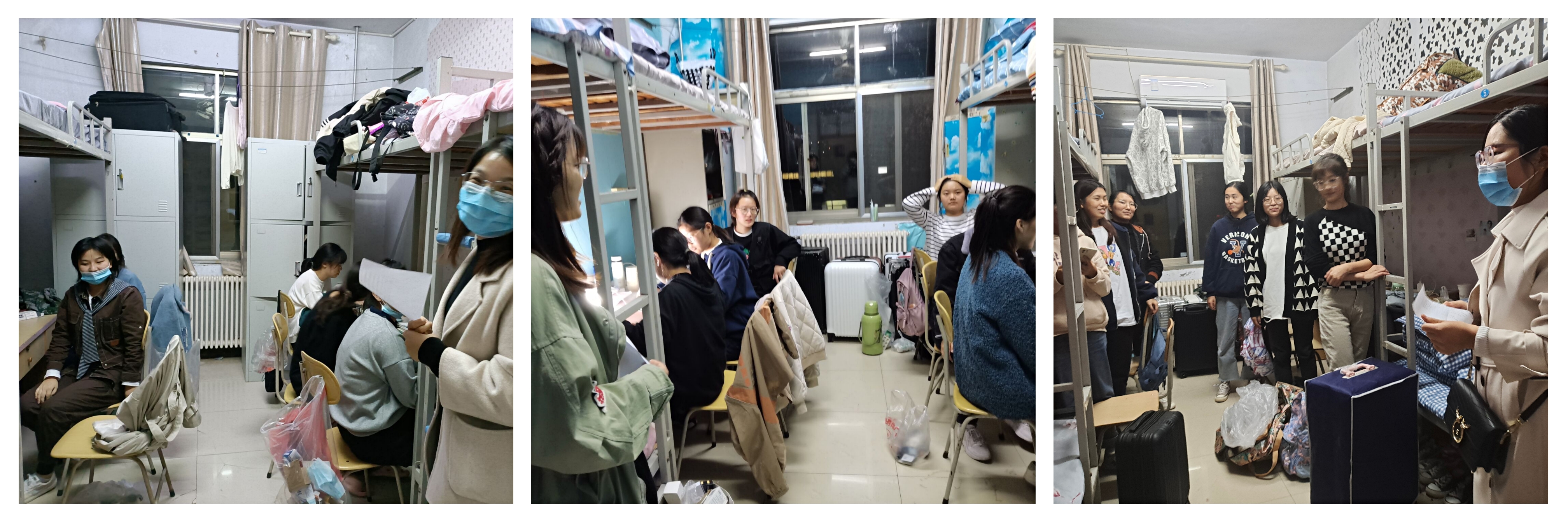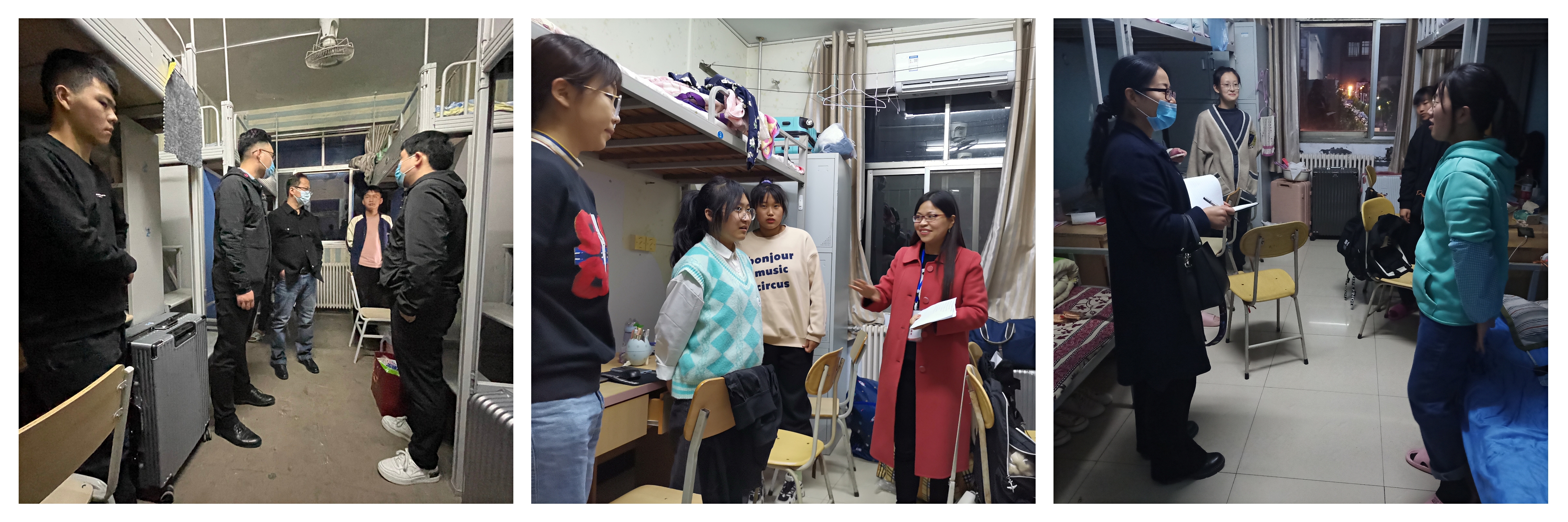 10月16日,麻豆精品㊙️国产传媒AV党委副书记张颜梅,副院长王涛、带领辅导员、班主任走进宿舍,看望2021级新同学。
