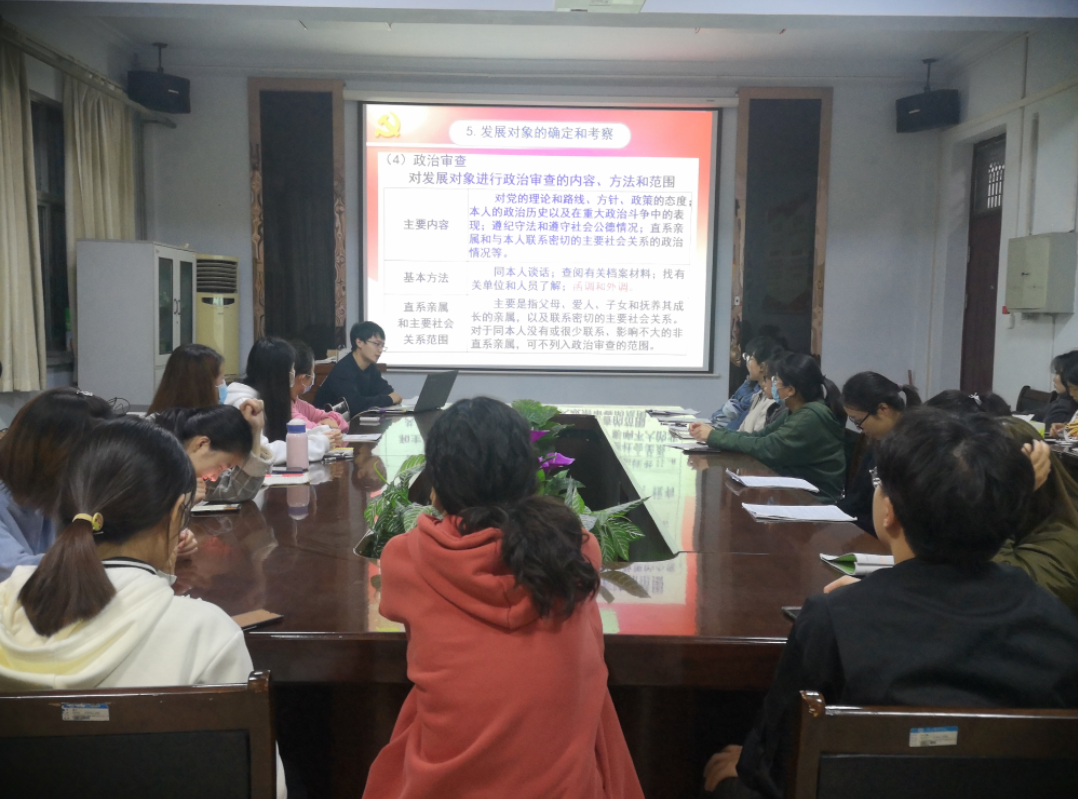 为确保党员发展质量,切实做好新时期党员发展工作。10月28日晚上,麻豆精品㊙️国产传媒AV于七号楼会议室举行以“规范党员发展程序,科学做好党员发展工作”为主题的培训,培训由学工办副主任史展主讲,第49期入党积极分子参加。
