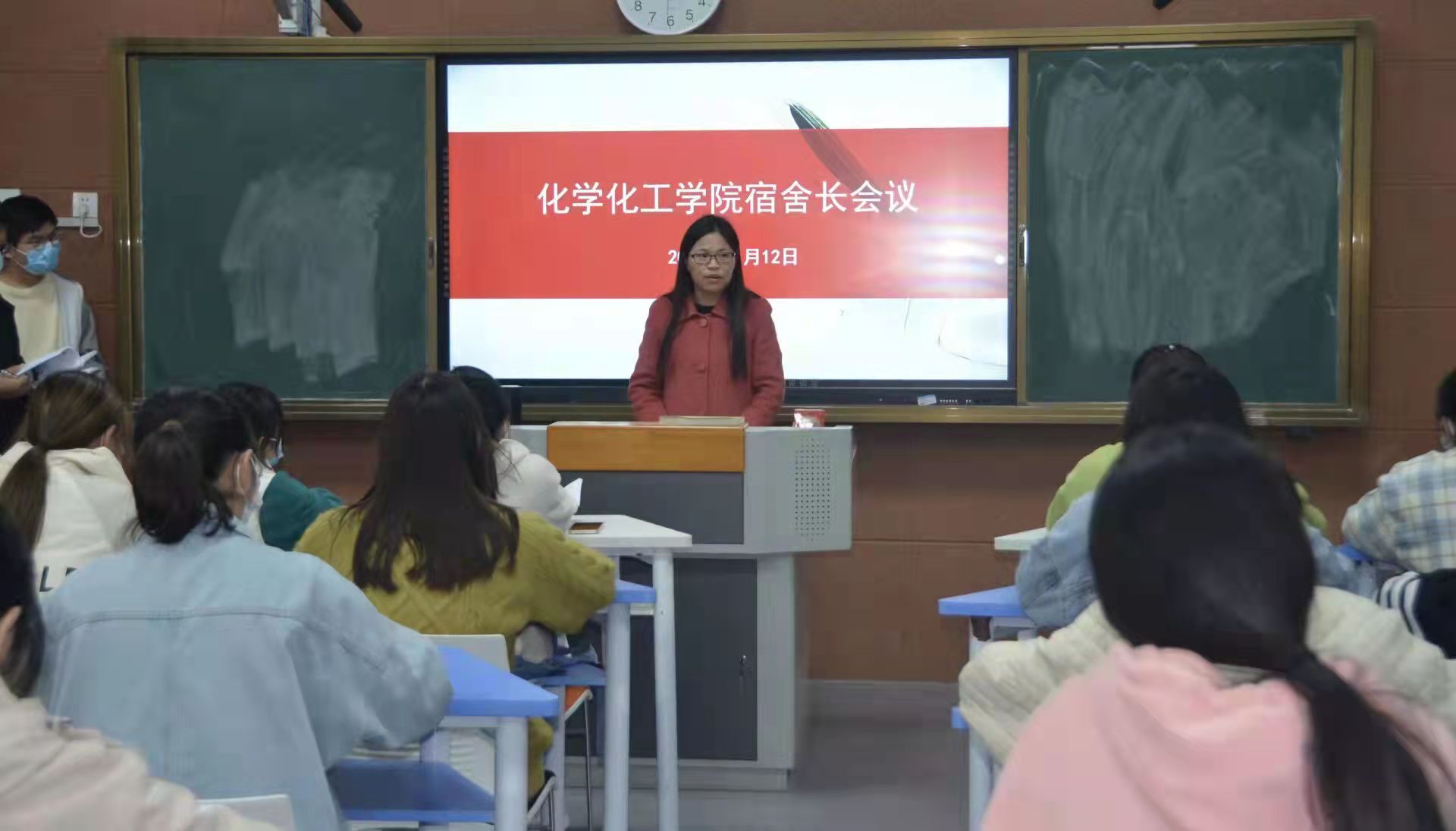 为加强新生宿舍管理,营造一个安全卫生、和谐温暖的宿舍氛围,11月12日,麻豆精品㊙️国产传媒AV于1号教学楼110教室召开了21级新生宿舍长会议。辅导员郭家瑞主持。