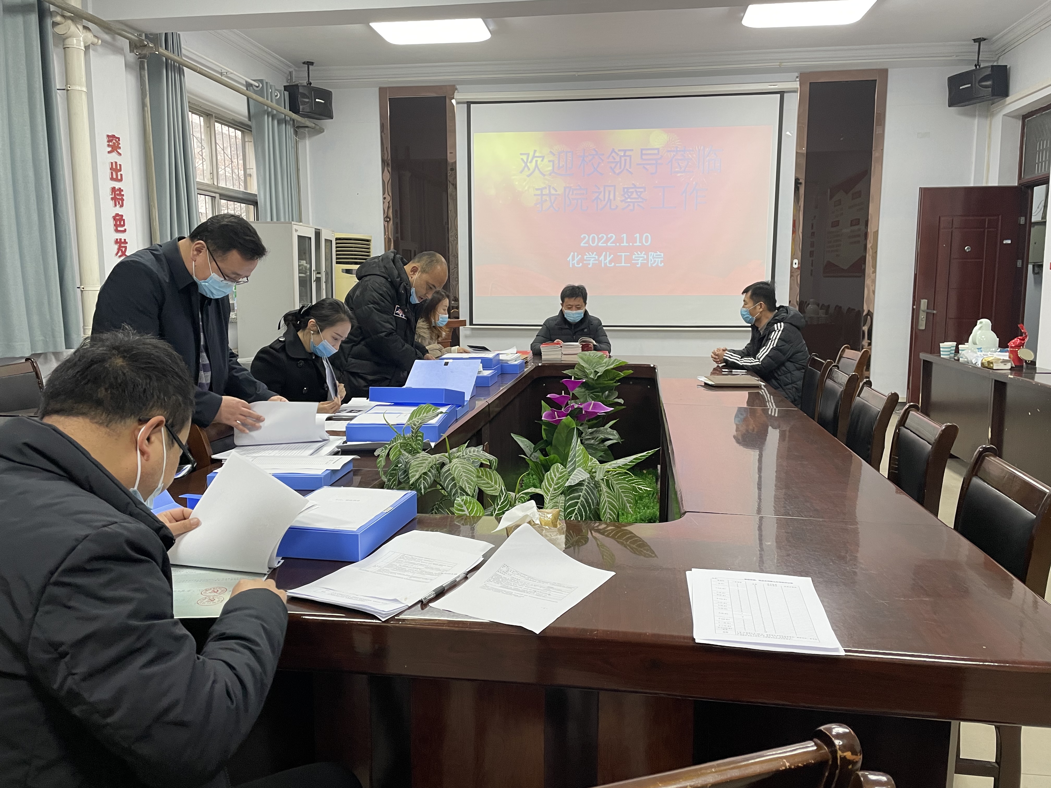 检查伊始,张辉就工作组进行现场检查考核的目的、工作要求和考核内容进行说明。我院党委书记李海涛简要汇报了学院党委2021年度工作开展情况。随后考核工作组对照《商丘师范学院基层党建工作考核办法》,对我院2021年度党建工作的档案材料进行了现场查阅。