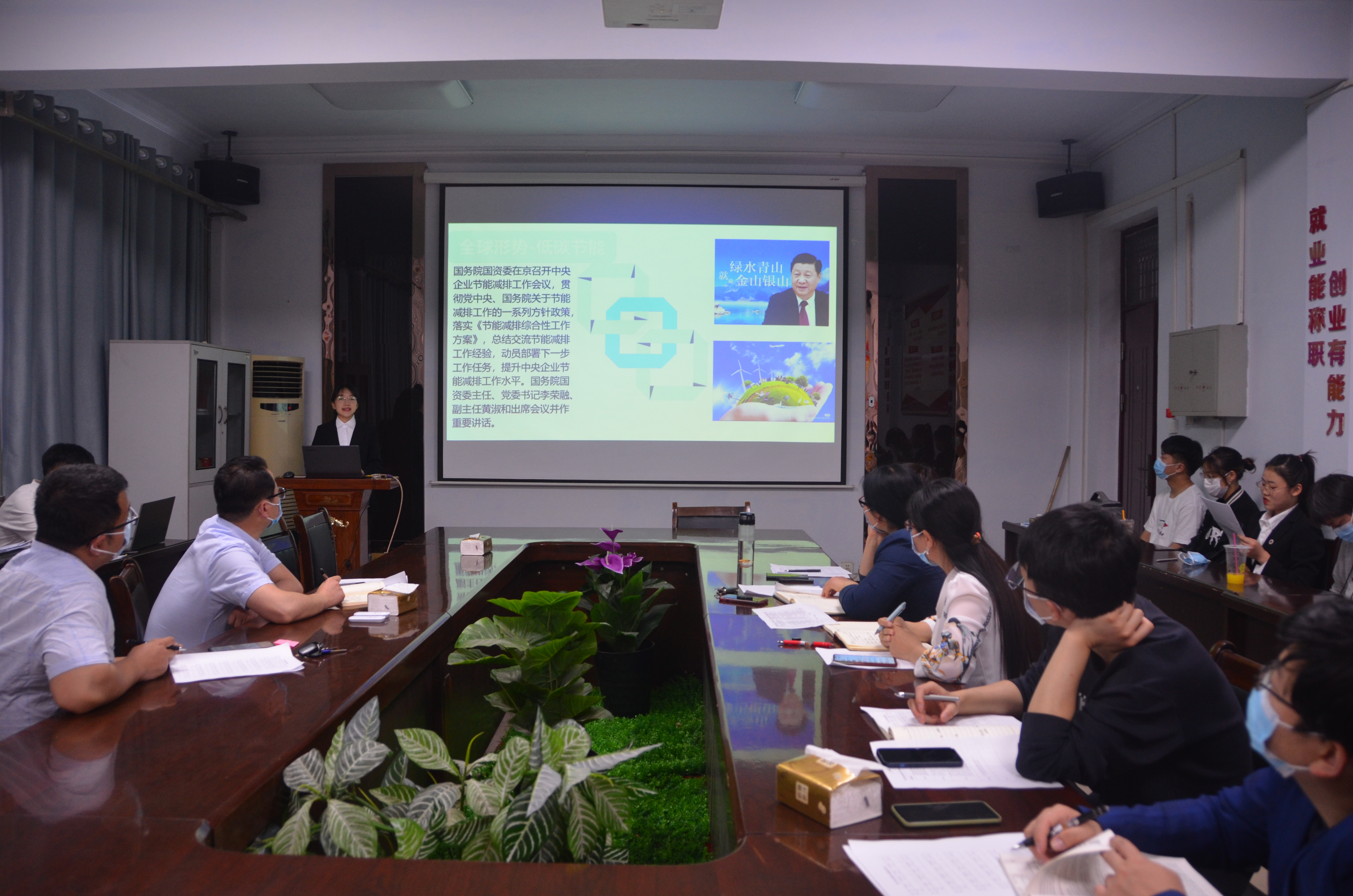 活动开始,张颜梅进行讲话,向参赛选手介绍了本次比赛答辩的关键点。随后九组选手依次上台,通过PPT展示介绍了本团队项目内容,答辩环节中汇报人与评委进行了充分的交流,评委老师指出了存在的问题。最后,张颜梅进行总结时指出各团队的项目与学科专业结合紧密,内容具有创新型,但还需要在项目书撰写、PPT制作等方面进一步修改和完善。
