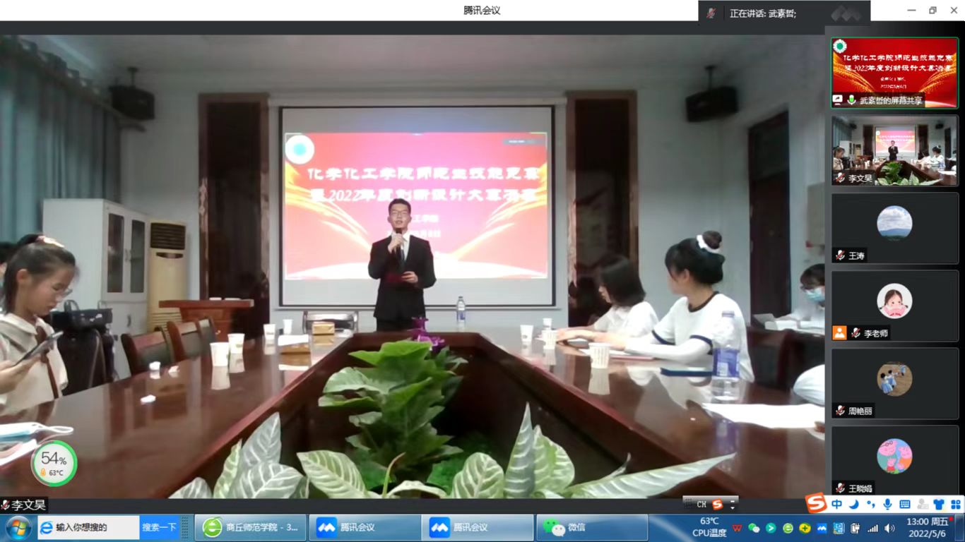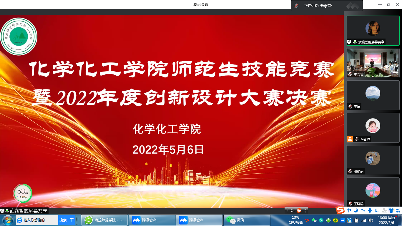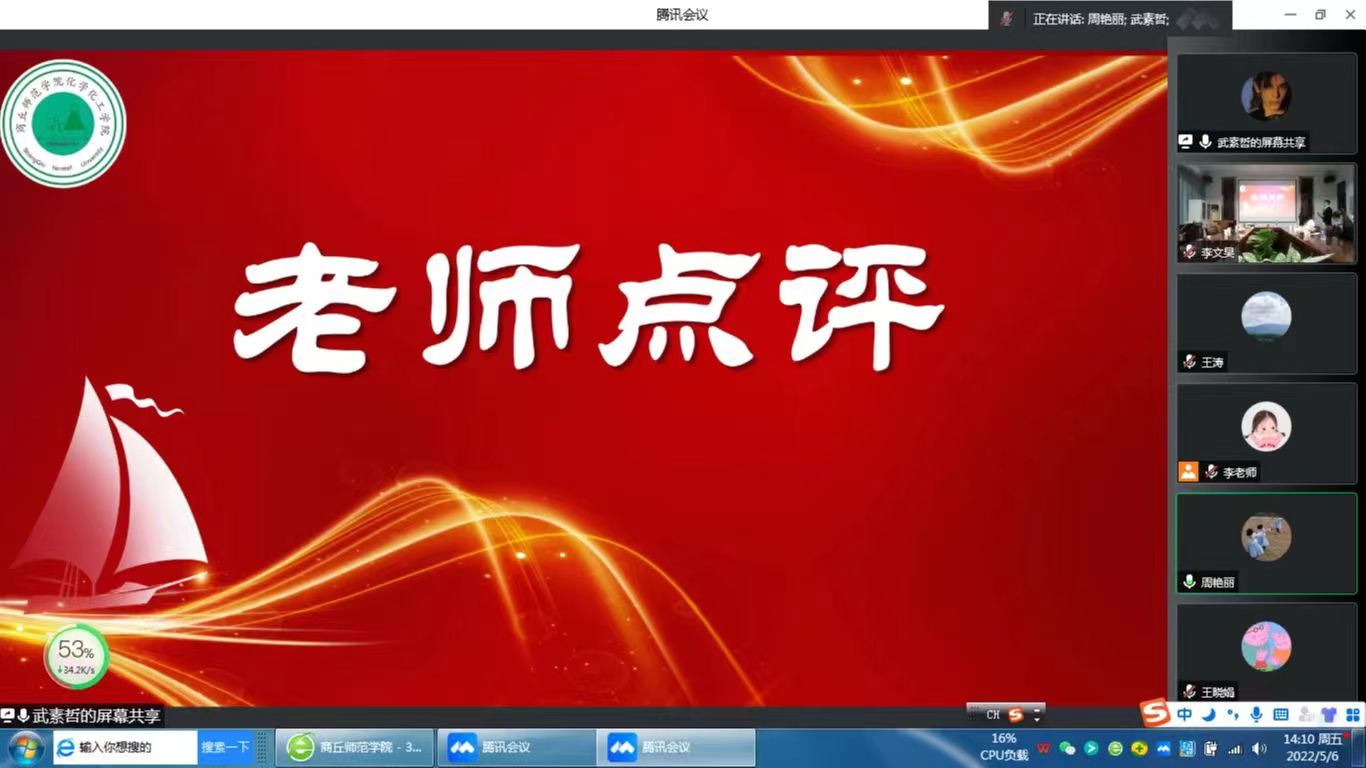 为提升化学师范生教育教学能力,提高PPT创新设计能力,5月6日,麻豆精品㊙️国产传媒AV于睢阳校区7#104会议室举行了化学专业师范生技能竞赛暨2022年度PPT创新设计大赛决赛。院党委副书记张颜梅、副院长周艳丽、副院长王涛及专业评委老师出席本次活动。