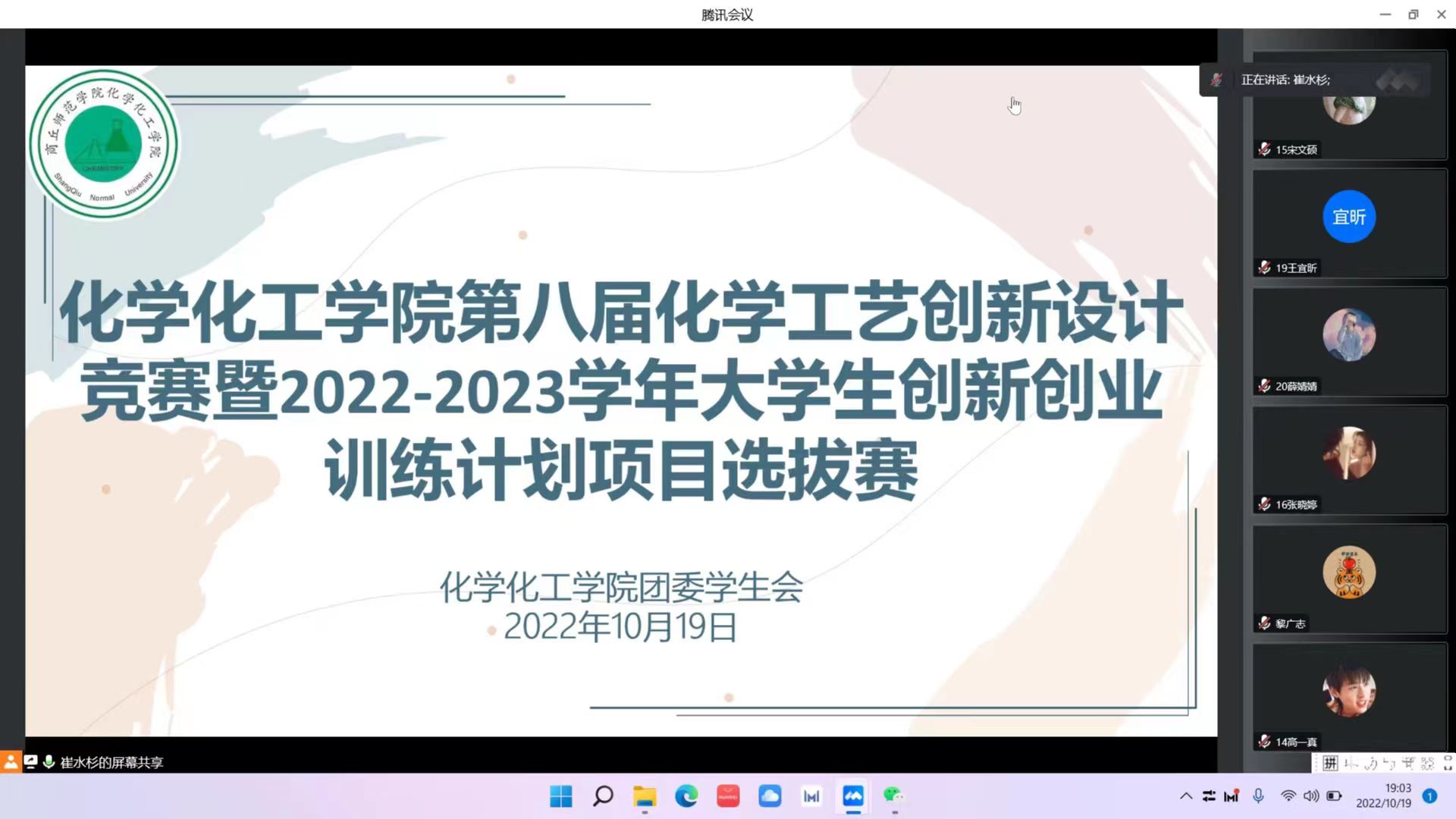 为增强大学生发现问题、分析问题和解决问题的能力,培养大学生的创新意识、创新能力和创新精神,对专业知识进行系统提升,培养工艺设计理念,培养团队协作精神。10月19日,麻豆精品㊙️国产传媒AV通过线上线下结合的方式举行了第八届化学工艺创新设计竞赛暨2022-2023学年大学生创新创新训练计划项目选拔赛。