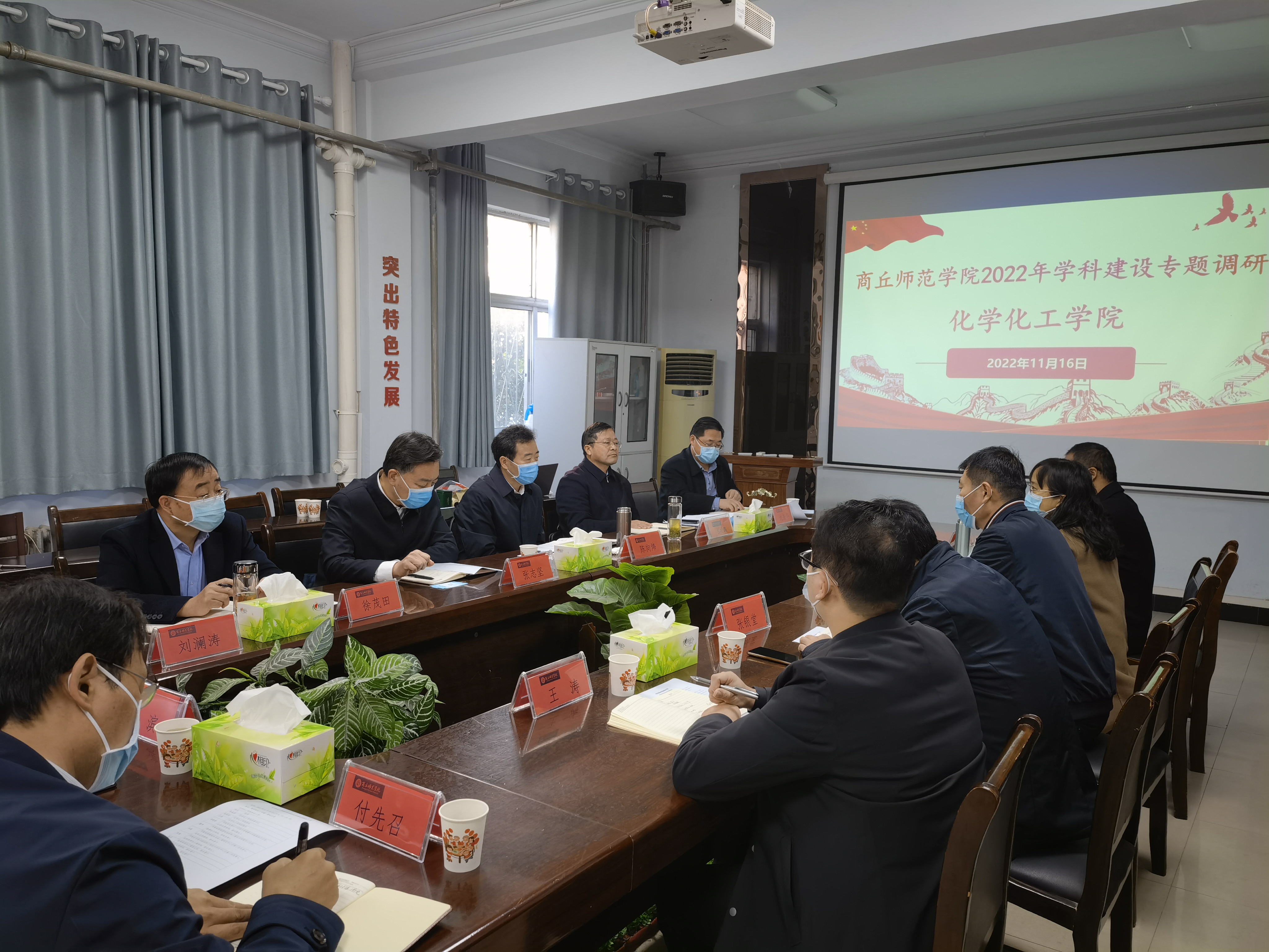 11月16日,校党委书记张志坚,校长陈向炜,副校长徐茂田、程功鹏在党政办公室、科研处、人事处、发展规划处等相关职能部门负责人陪同下来我院调研和指导学科建设工作。我院领导班子、学科带头人及骨干教师代表参与了座谈会。