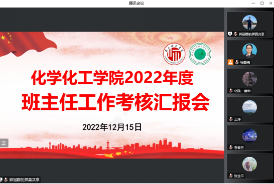 为深入学习贯彻党的二十大精神,落实“立德树人”根本任务,进一步加强班主任队伍建设,12月15日晚,我院在线上召开2022年度班主任工作考核汇报会,对过去一年来班主任工作开展情况进行总结,学院全体领导班子成员、全体班主任和辅导员参加会议。会议由学院党委副书记张颜梅主持。