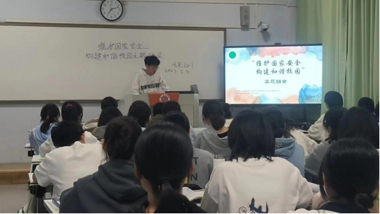 化学22-1班采用主题演讲的方式,演讲内容融入深厚的爱国情怀,让同学们深刻认识到维护国家稳定的重要性,强化了责任意识,营造了良好的自觉履行维护国家安全责任和义务的氛围,构筑了青年学生在维护国家安全中的责任与担当。