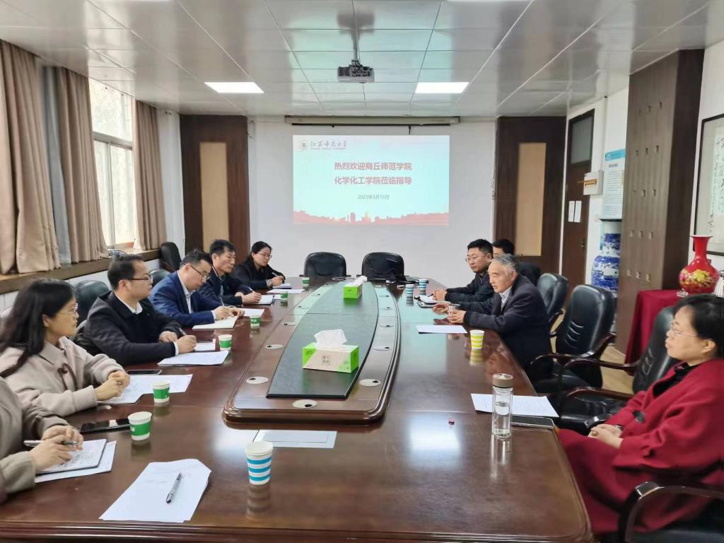 3月14日至15日,麻豆精品㊙️国产传媒AV党委书记李海涛,院长张银堂,党委副书记张颜梅,副院长王涛,河南省生物分子识别与传感重点实验室执行主任周艳丽,化学系副主任董辉,制药工程系主任王晓娟一行7人赴江苏师范大学化学与材料科学学院调研交流。