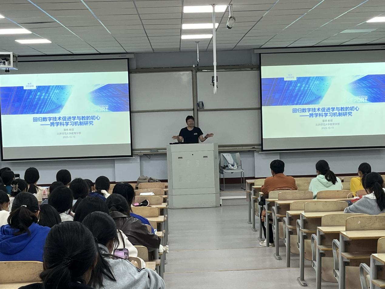 10月15日,应学院邀请北京师范大学教育学部董艳教授为我院学生做了题为《回归数字技术促进学与教的初心——跨学科学习机制研究》讲座。我院教师代表以及化学专业的全体师范生参加讲座。