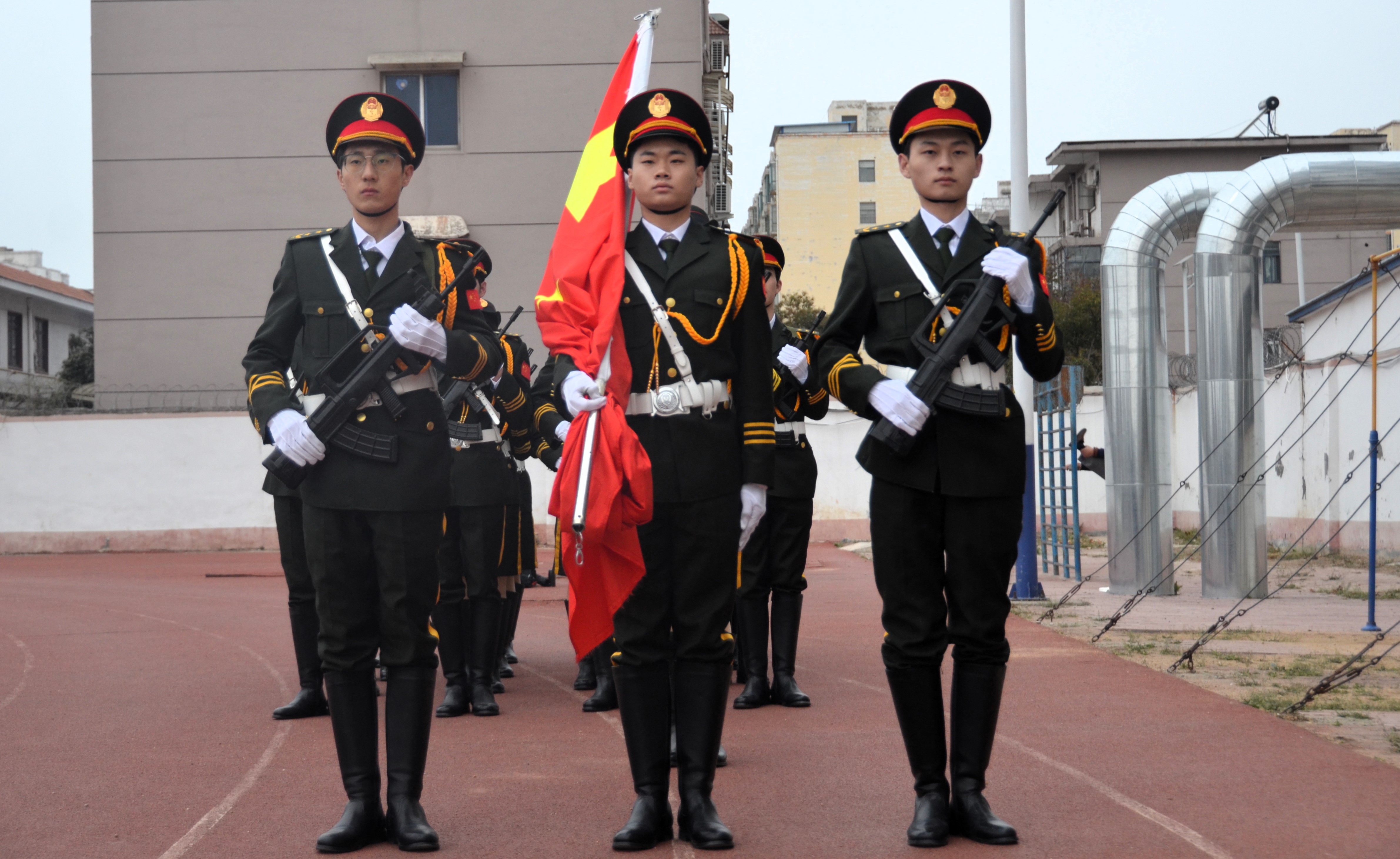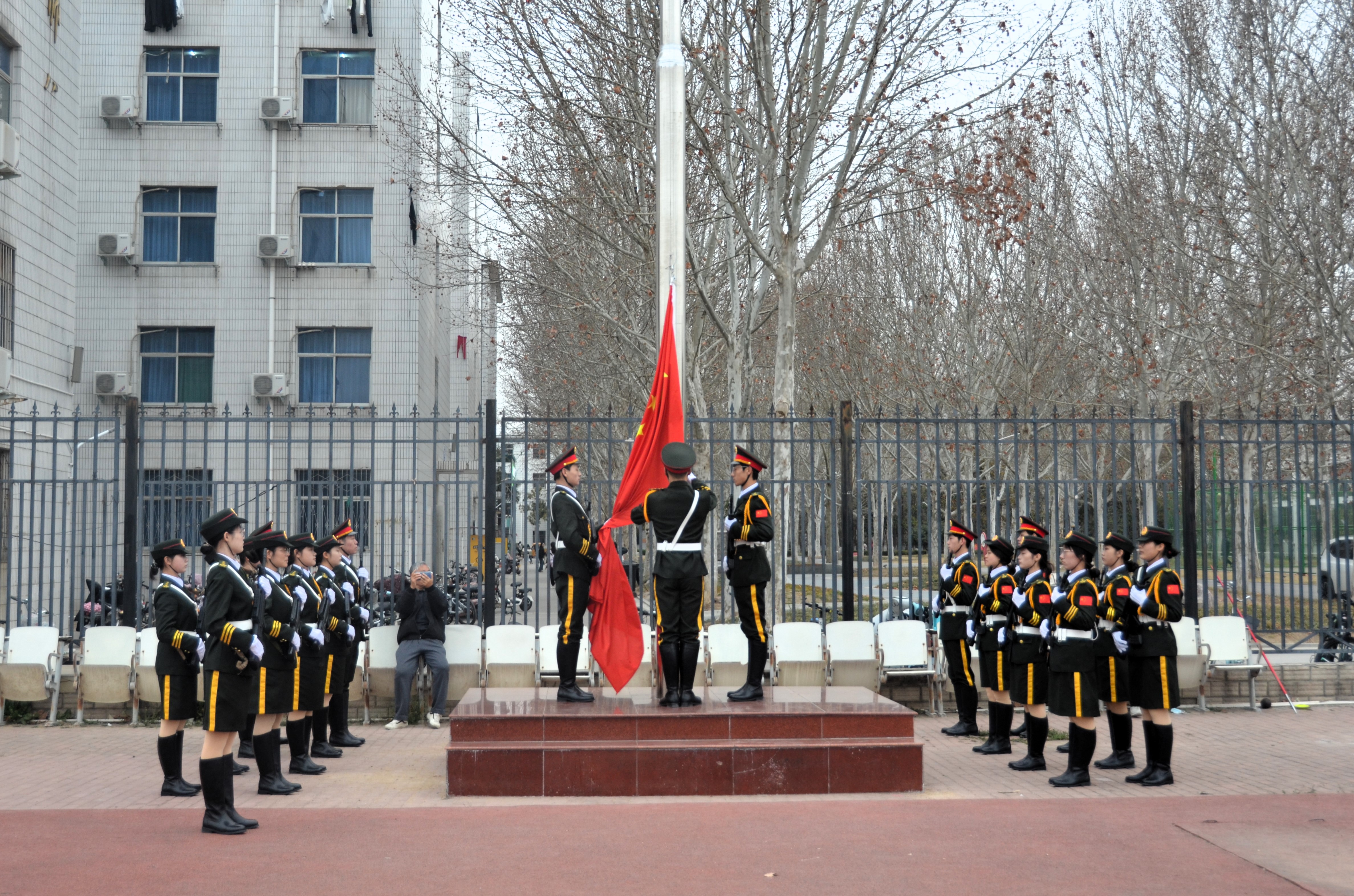 上午6时许,全体参与人员准备就位。6时50分许,升旗仪式正式开始。在全体师生的注目礼下,英姿飒爽的国旗护卫队踏着整齐的步伐护送着鲜艳的五星红旗国旗走到旗杆下,行礼完毕后,伴随着庄严的《中华人民共和国国歌》,五星红旗冉冉升起,迎风飘扬。在场的每一个人向国旗行注目礼,合唱国歌,表达对五星红旗的崇高敬意。