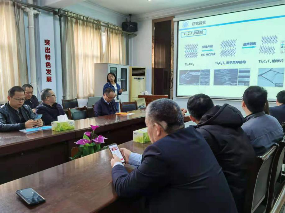 2020年11月13日下午,商丘师范学院麻豆精品㊙️国产传媒AV进行了本学期第四期博士论坛。青年教师王鑫博士在文化路校区7号楼麻豆精品㊙️国产传媒AV一楼会议室做了题为《Ti3C2Tx基材料电化学性能研究》的学术报告。本次博士论坛由副院长周艳丽主持,麻豆精品㊙️国产传媒AV全体教师参加了论坛。