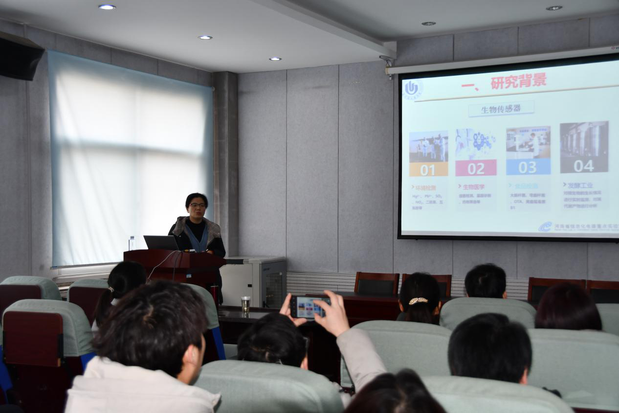 在学术报告中,姜利英教授向大家介绍了课题组在无创血糖仪研究、电化学型生物传感器及荧光型生物传感器的研究进展,侧重强调面向食品安全、医疗诊断等领域研究生物传感器及其便携式检测仪表、生物信息快速检测与早期诊断技术。报告会结束后,姜教授与大家在生物传感器的选择性、探针设计及实际应等方面进行了交流和探讨,对今后的研究工作具有重要的指导和启迪意义。