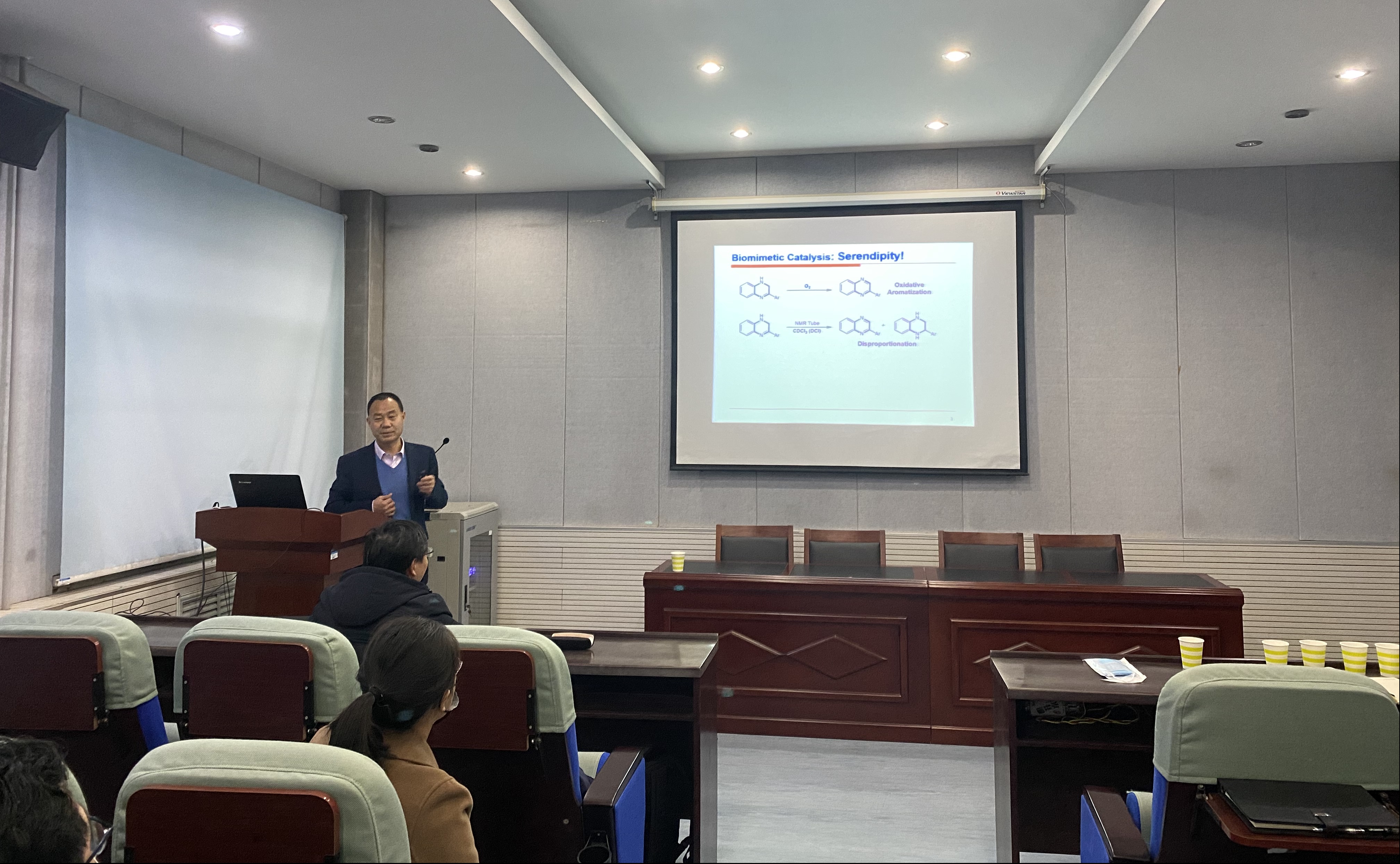 报告会上,周永贵研究员介绍了他的科研团队在前期不对称氢化工作基础上,基于NAD(P)H辅酶的氢转移模式,如何巧妙设计,并成功地发展了三代仿生不对称氢化反应体系,取得的一系列高水平研究成果。报告会讨论环节,麻豆精品㊙️国产传媒AV师生积极发言,与周永贵研究员进行了深入的学术交流和互动。周永贵研究员的报告逻辑清晰,内容丰富,讲解深入浅出,对我校的人才培养、科研工作、学科发展具有重要的指导作用。