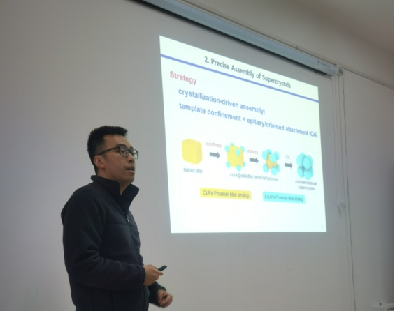 佴建威教授的报告围绕微纳组装材料展开,这种材料是凝聚态物质中的一种新结构,可为我们研究介观体系下的材料结构、热力学、动力学以及相转化过渡态等提供重要的可视化平台。相较于纳米颗粒基元,微纳组装体可以展现更特殊的性质:组装超结构可以通过集体效应增强基元的特性,例如在催化领域中,微纳组装材料可以有效解决纳米催化剂的失活问题,而且通过组装不同的基元可以丰富材料的组成以及界面结构,实现多功能化。因此,发展新型的微纳组装材料对于深入理解材料在微观尺度下的结构演变过程及设计制备功能化的微纳米材料具有十分重要的科学意义。