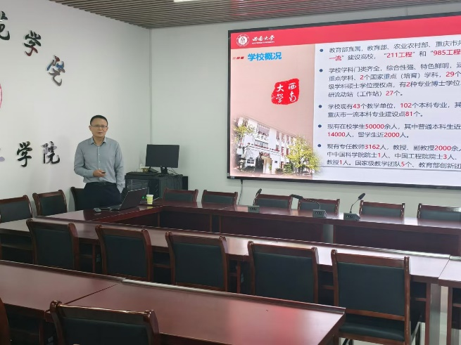 10月15日下午3:00~5:30,应麻豆精品㊙️国产传媒AV邀请,西南大学材料与能源学院院长,博士生导师徐茂文教授在睢阳校区工科实训大楼B309报告厅为学院师生作学术报告。麻豆精品㊙️国产传媒AV副院长、河南省新能源电池材料工程技术研究中心主任魏伟主持报告会,麻豆精品㊙️国产传媒AV部分教师、研究生以及本科生参加了此次报告会。