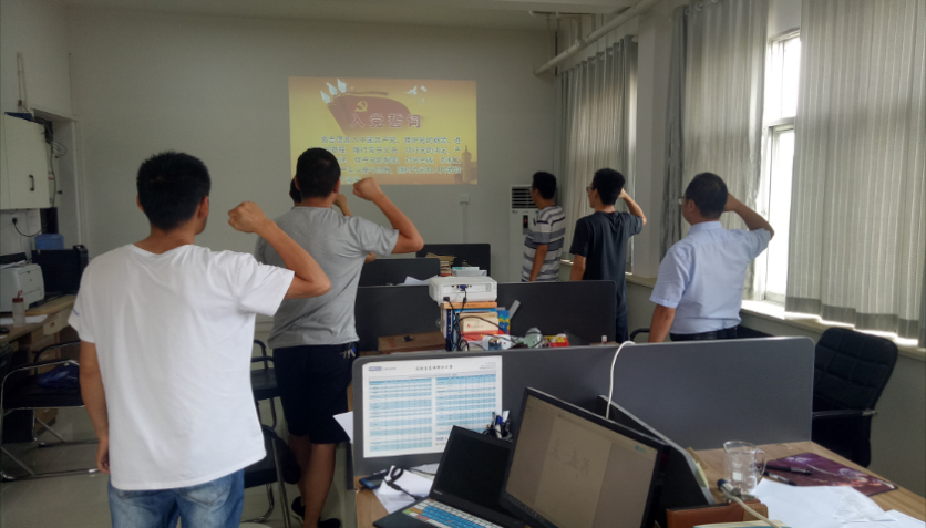 首先,本支部全体党员一起观看了电影《建党伟业》。从1911年辛亥革命到1921年中国共产党成立,毛泽东、蔡和森等同志苦苦寻求救国之路的历程,陈独秀、李大钊等先进知识分子对马克思主义的学习和探索……在这短短的十年时间里,有志于改变中国、富强中国的先辈们付出的种种努力再一次展现在了所有人的面前,在这风雷激荡、巨变迭起的时代中所发生的故事也深深地感染了本支部的所有党员教师。然后,所有党员重温了入党誓词。