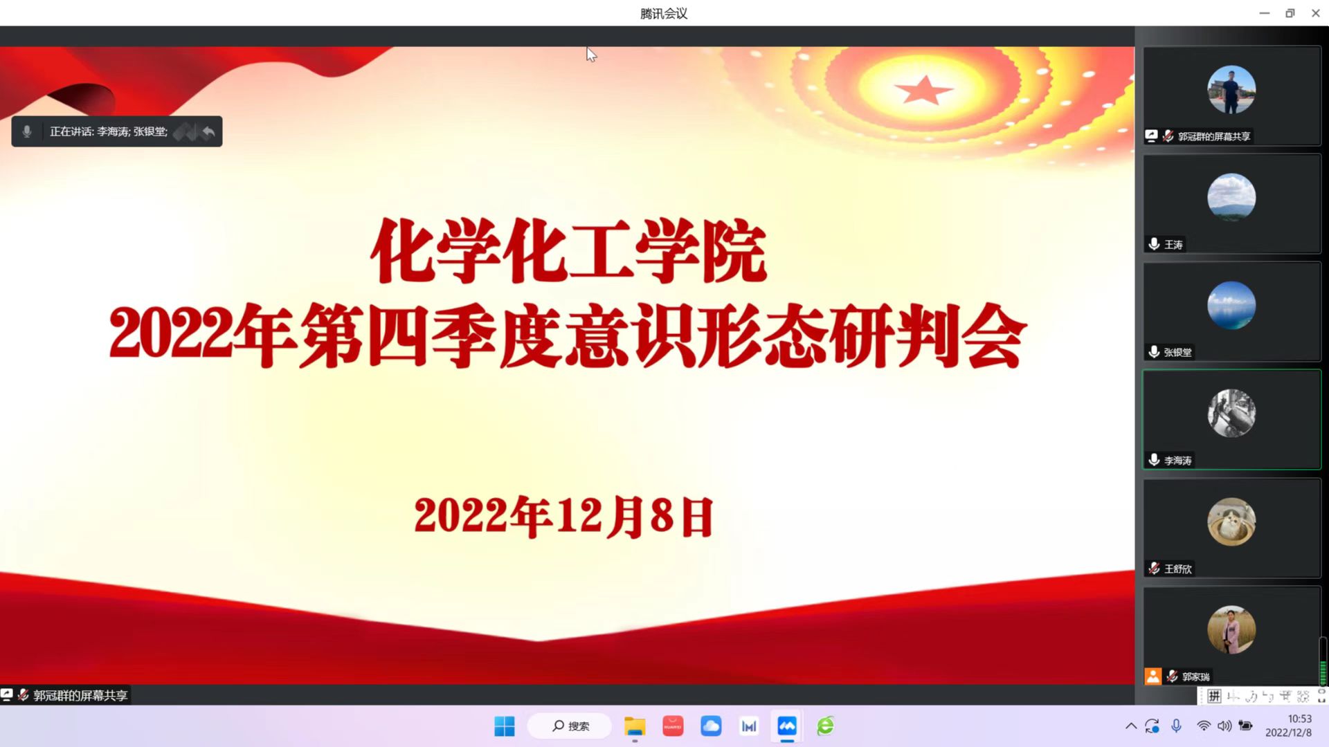李海涛在听取大家发言后进行了总结,并对明年的意识形态工作提出要求,一是加强理论学习,突出思想引领。深入学习宣传贯彻党的二十大精神,全面加强思想道德建设。二是管好“五个阵地”,彰显党性原则。继续管好课堂、科研、宣传、网络、学生五个阵地,确保不出现任何问题。