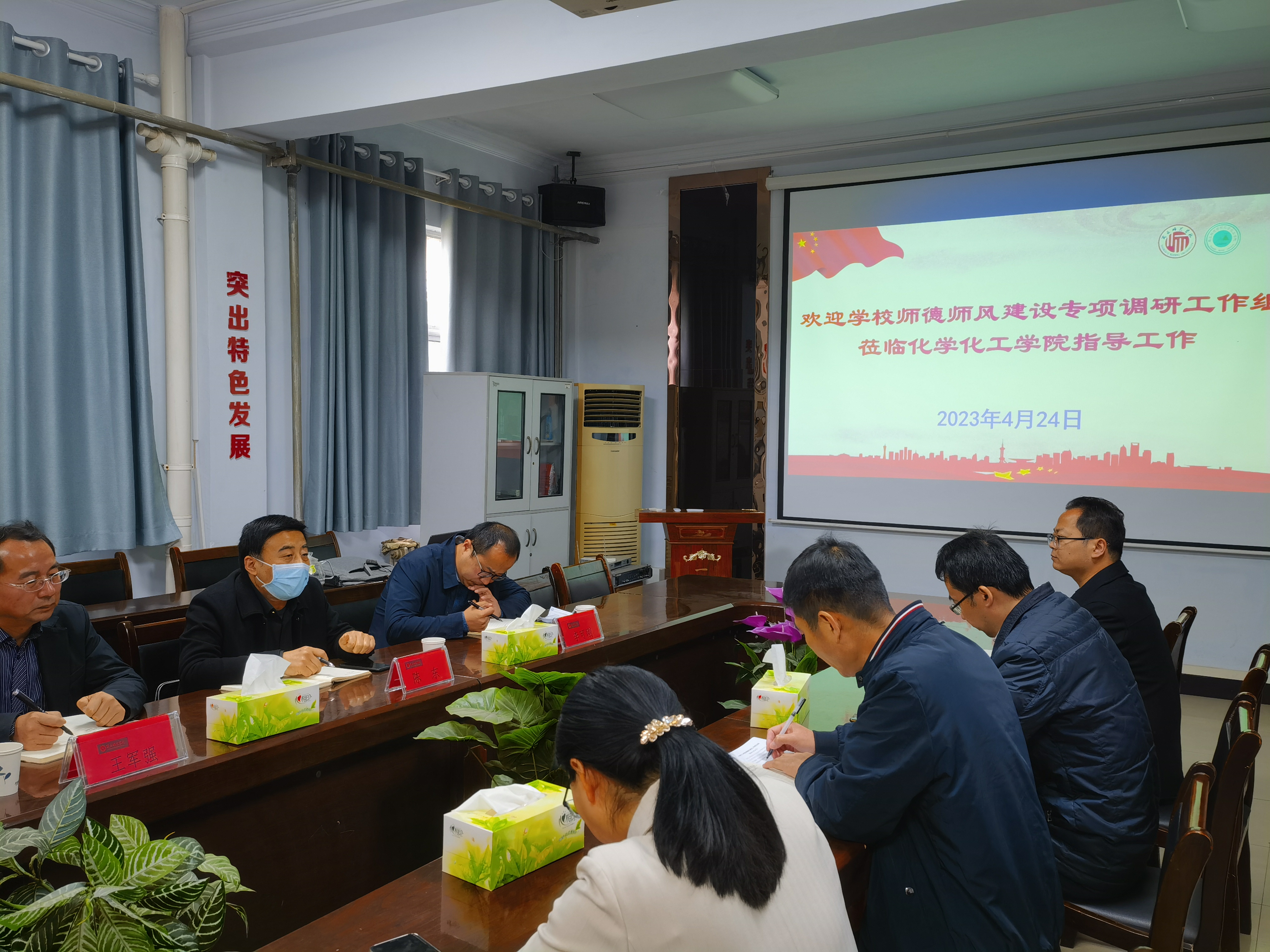 根据《学校关于开展师德师风建设专项调研工作的通知》精神,4月24日上午,学校师德师风建设专项调研工作组第一组组长、学校纪委副书记陈东带领师范生职业技能训练中心主任王军强、党校教育科科长李可刚到我院进行师德师风建设专项调研。学院班子成员参加调研座谈会,会议由专项调研组组长陈东主持。