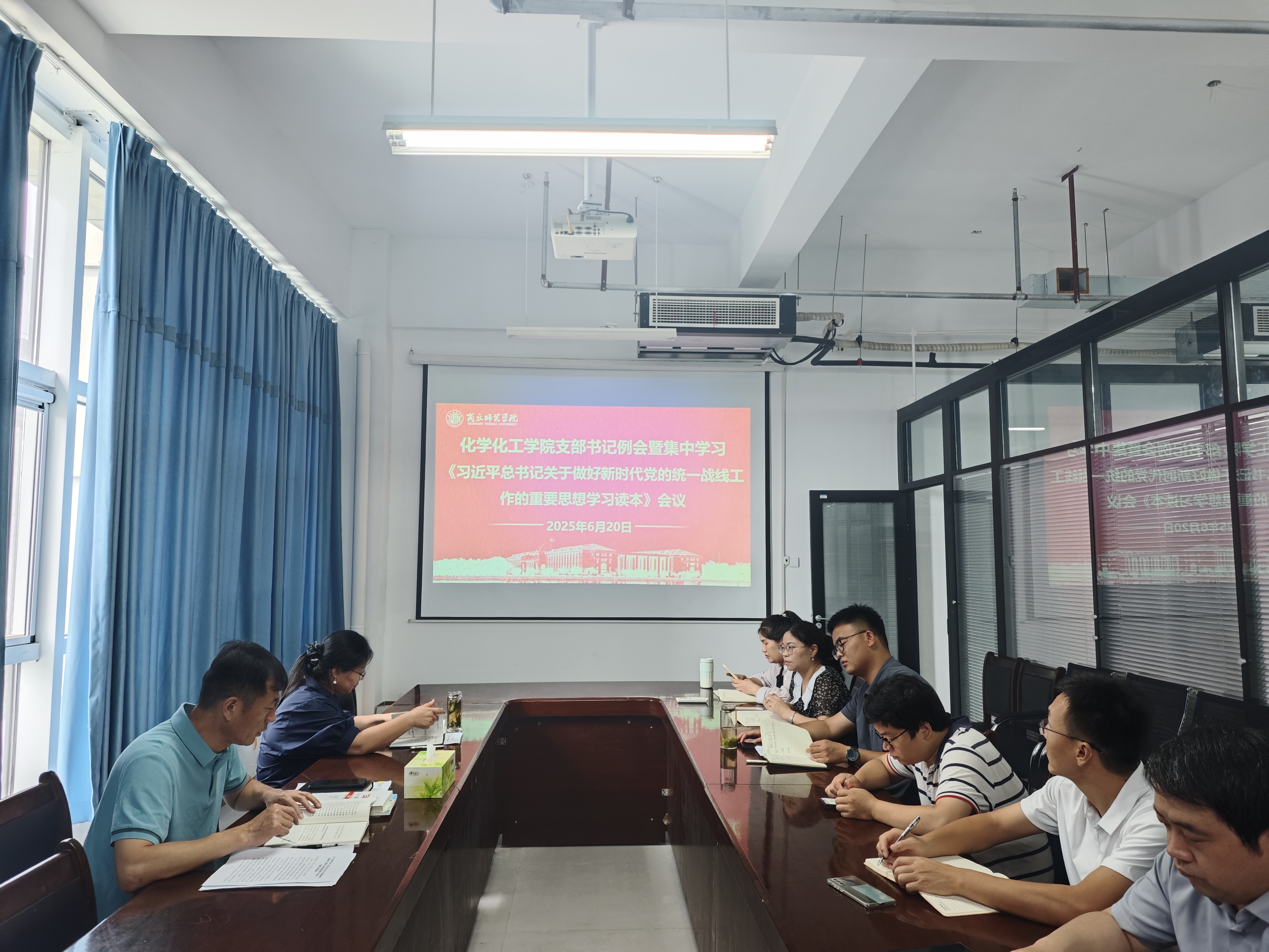 6月20日,麻豆精品㊙️国产传媒AV党委召开6月份党支部书记例会暨《习近平总书记关于做好新时代党的统一战线工作的重要思想学习读本》第五章专题学习会议。会议由党委书记李海涛主持,党委副书记张颜梅及各党支部书记参加会议。