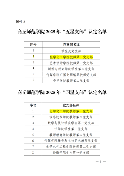 近日,学校党委印发《中共商丘师范学院委员会关于公布2025年“五星”支部名单的通知》,我院党支部建设工作再获肯定。教师第三党支部荣获“五星支部”荣誉称号,教师第一党支部荣获“四星支部”荣誉称号,此次评选结果是学校党委对我院教师党支部工作的肯定,学院将继续深化党建工作,不断探索提升路径。
