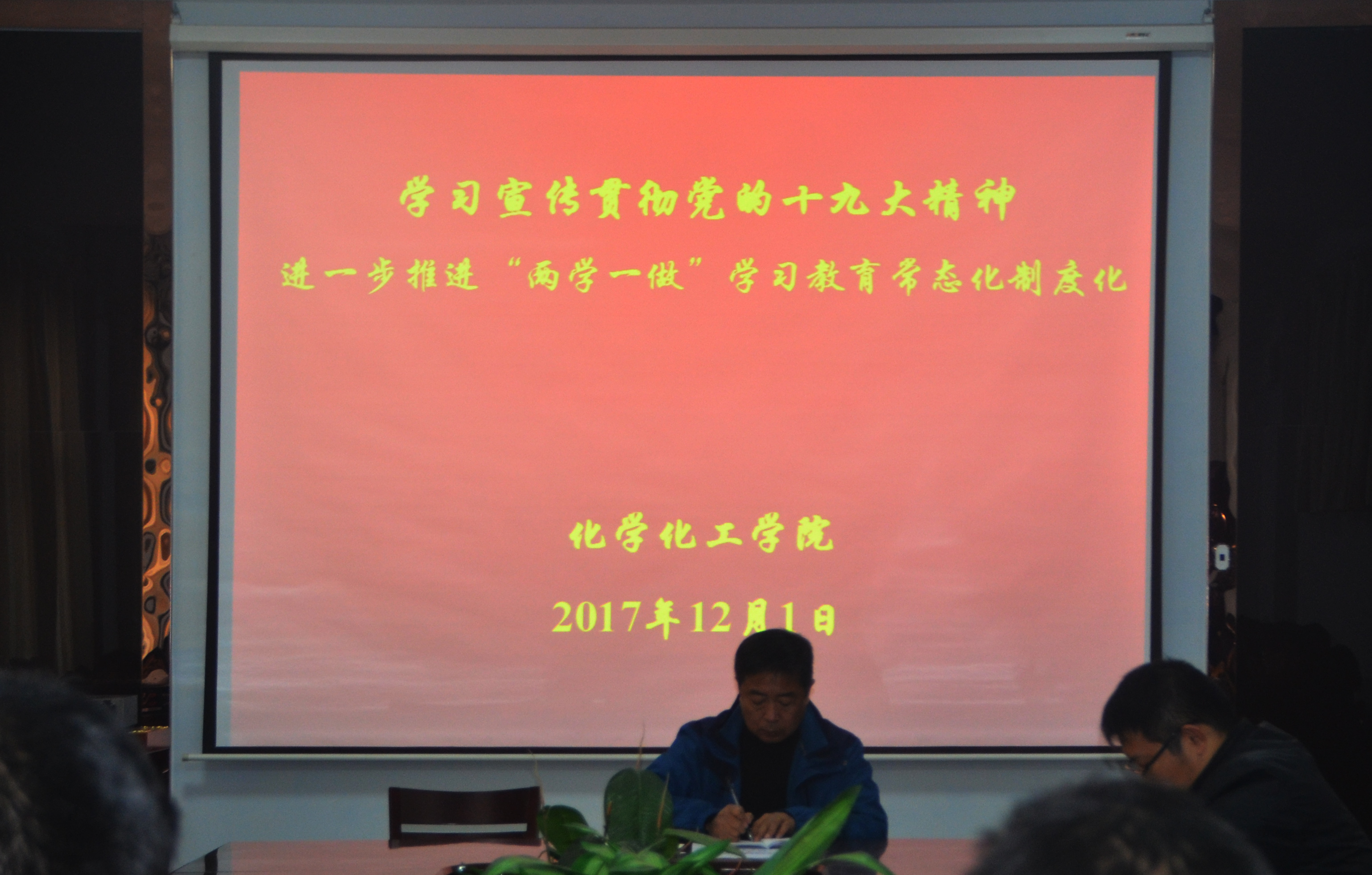 通过此次会议,我院老师不仅深刻学习贯彻了党的十九大精神,还对“两学一做”学习教育常态化制度化有了进一步了解,为以后我院全体师生的政治、思想学习教育打下了坚实的基础。