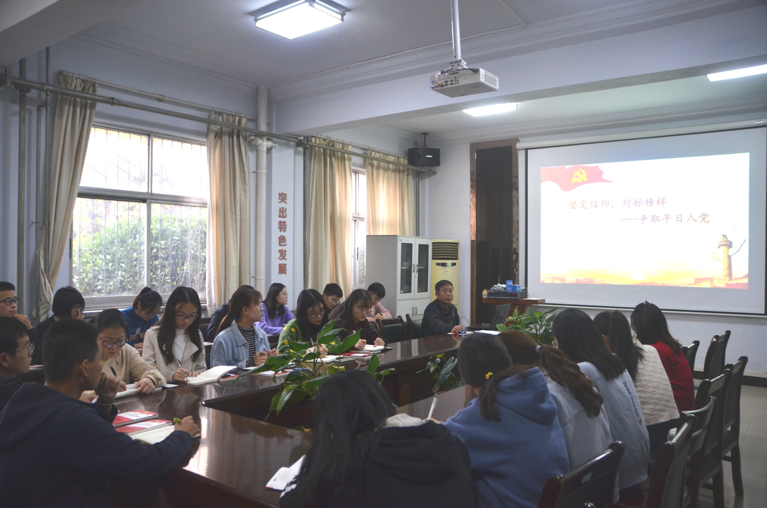 为了帮助入党积极分子深刻认识中国共产党,端正入党动机,明确奋斗目标,永远跟党走,争取早日加入中国共产党。10月18日下午在睢阳校区七号楼会议室,麻豆精品㊙️国产传媒AV党总支书记韩忠民为第45期入党积极分子上了题为 “坚定信仰,对标榜样——争取早日入党”生动党课。全体入党积极分子中级学员参加。