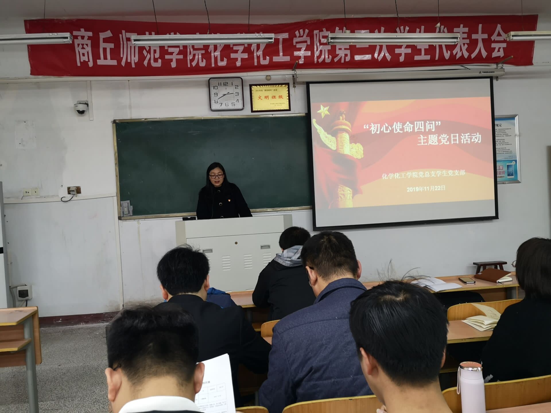 为深入推进“不忘初心、牢记使命”主题教育,紧扣主题教育“守初心、担使命,找差距、抓落实”总要求,麻豆精品㊙️国产传媒AV学生党支部11月23日于1号楼408组织开展“初心使命四问”主题党日活动。院四个学生党支部全体成员参加会议,会议由学生第一党支部书记李龙梅主持。
