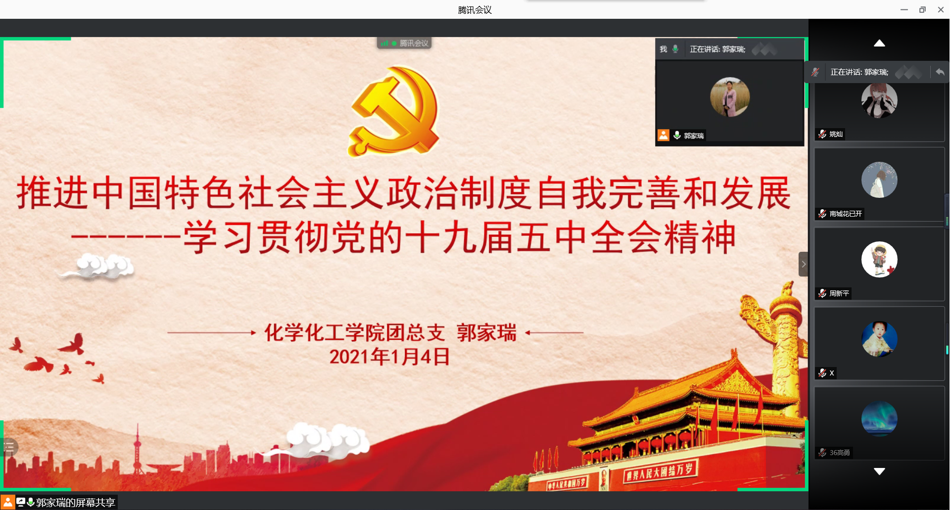 2020年1月4日-6日,麻豆精品㊙️国产传媒AV团总支开展了十九届五中全会精神宣讲进支部活动,本次活动由麻豆精品㊙️国产传媒AV团总支副书记郭家瑞主讲,共开展四次宣讲,覆盖全院21个团支部。