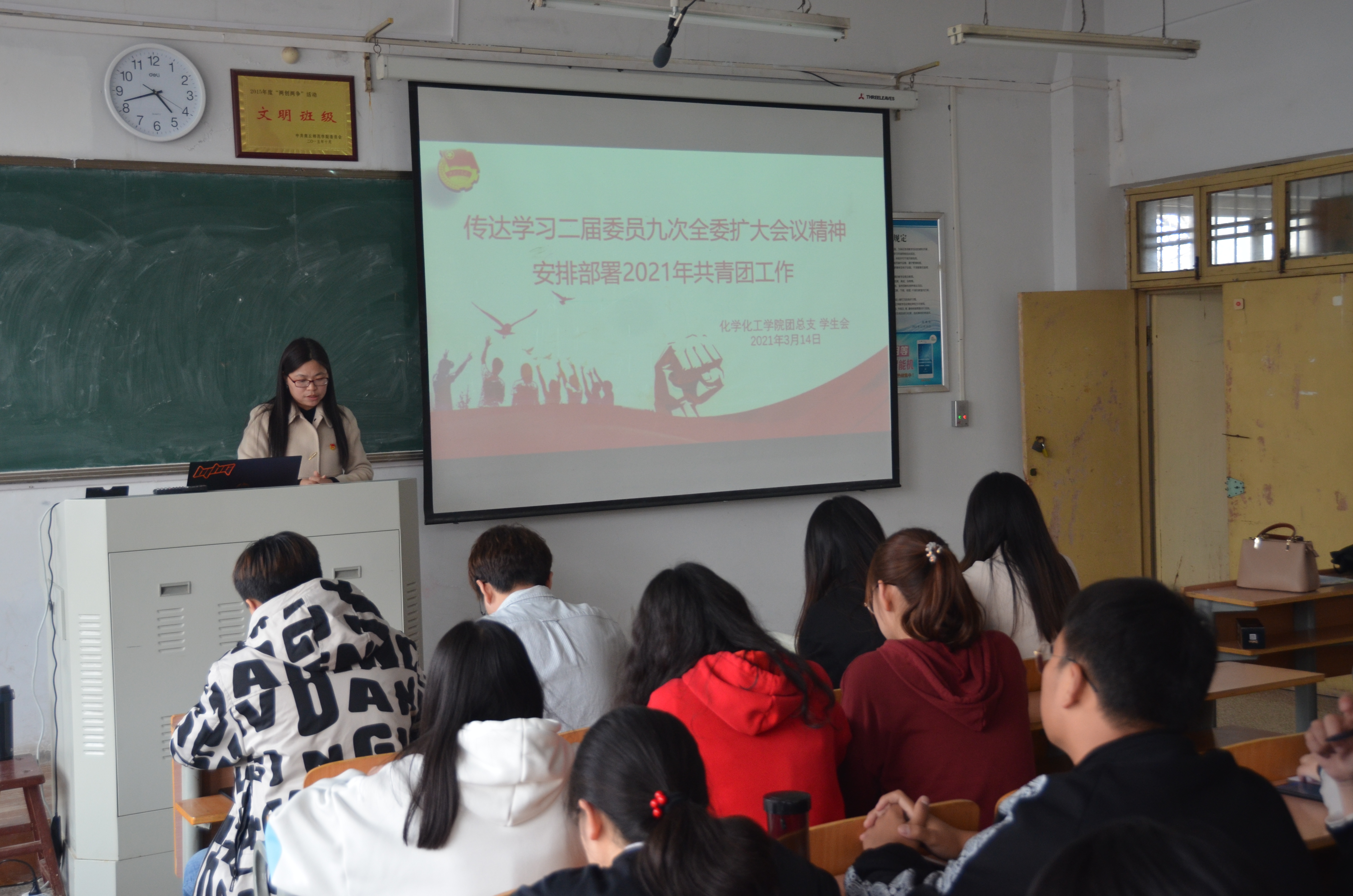 会上,郭家瑞领学了《习近平总书记在党史学习教育动员大会重要讲话》,传达学习了《2021年全省共青团工作要点》和《校2021年共青团工作要点》。郭家瑞对主题团日活动、基层团建、理论学习、学生会组织深化改革、社团管理等重点工作进行了安排部署。各部门负责人对近期工作进了汇报总结。