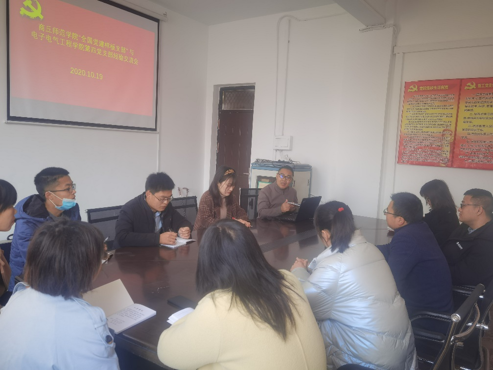 为充分发挥我校“全国党建样板支部”的引领、辐射、带动作用,2020年10月19日,在支部书记魏伟的带领下,全体支部党员与电子电气学院教师第四党支部展开了经验交流活动。电子电气学院第四党支部书记李立强及部分支部党员参与了交流会。