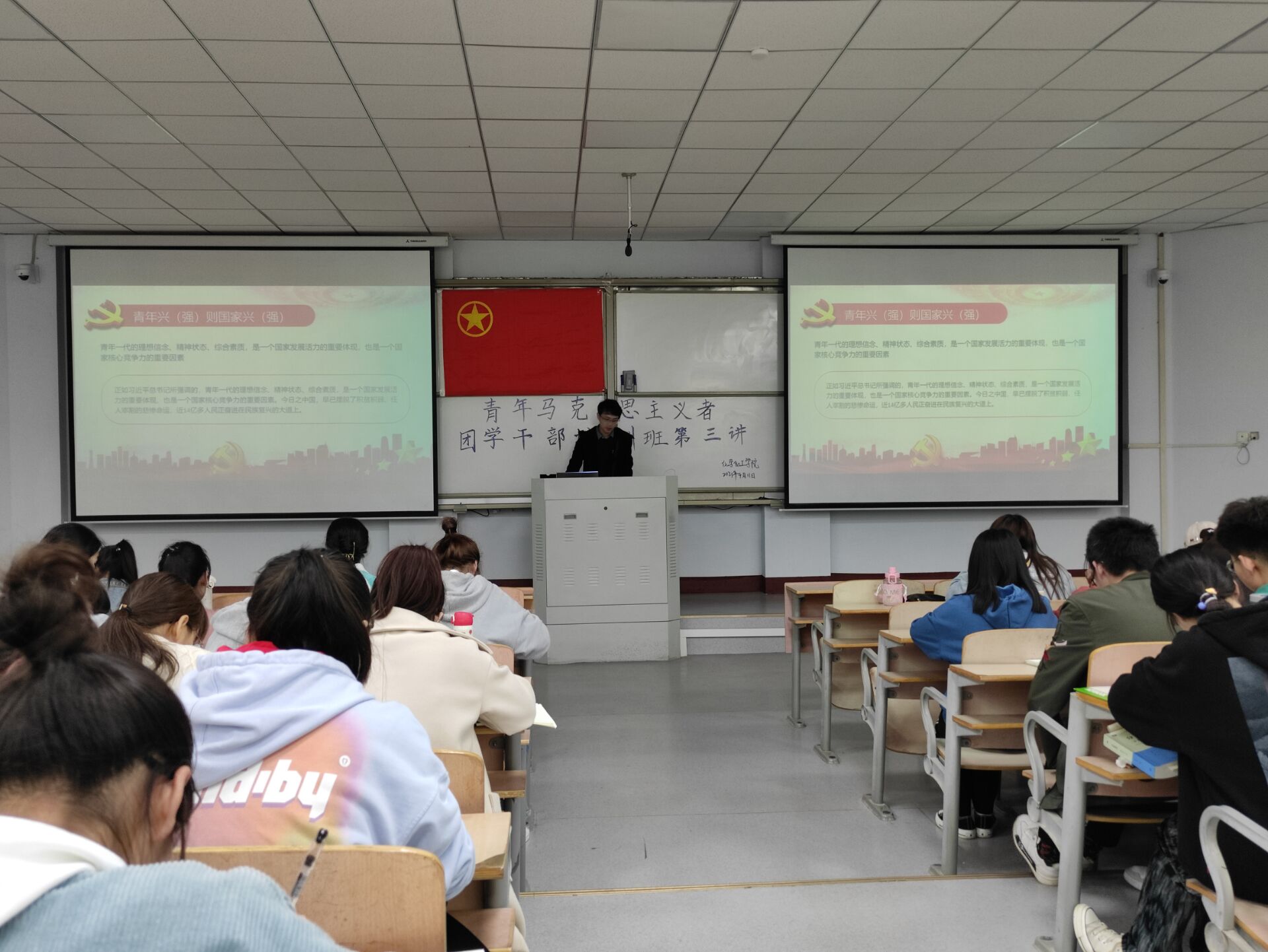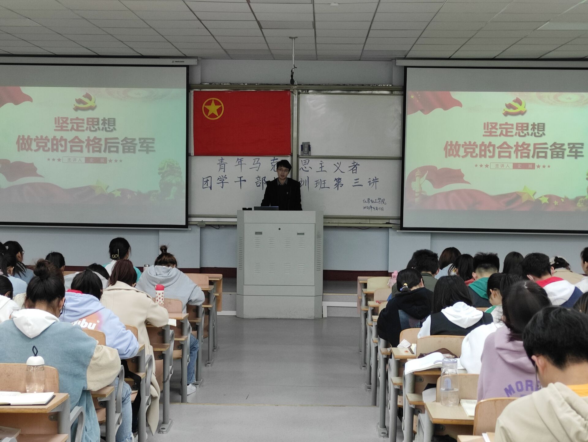为加强入党积极分子培养教育,努力培育高素质党的后备军。麻豆精品㊙️国产传媒AV于4月11号在1号教学楼207教室开展以“坚定思想,做党的合格后备军”为主题的青马培训活动。学生第三党支部书记史展主讲,19级、20级青马培训学员参加。