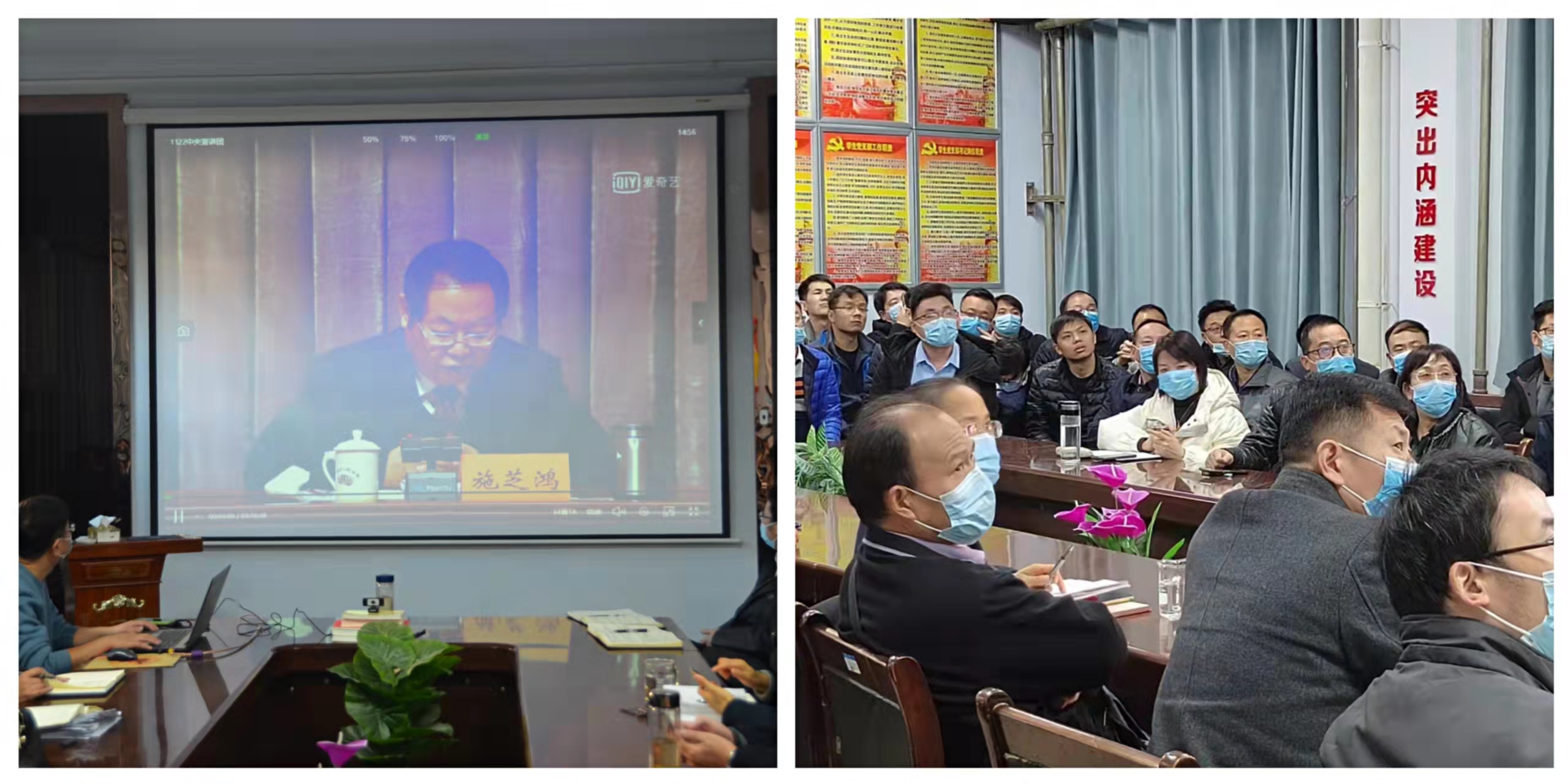 12月3日,麻豆精品㊙️国产传媒AV于睢阳校区7号楼学院会议室召开全体教职工会议,集体观看党的十九届六中全会精神中央宣讲团报告会在豫宣讲视频。院党委书记李海涛主持。