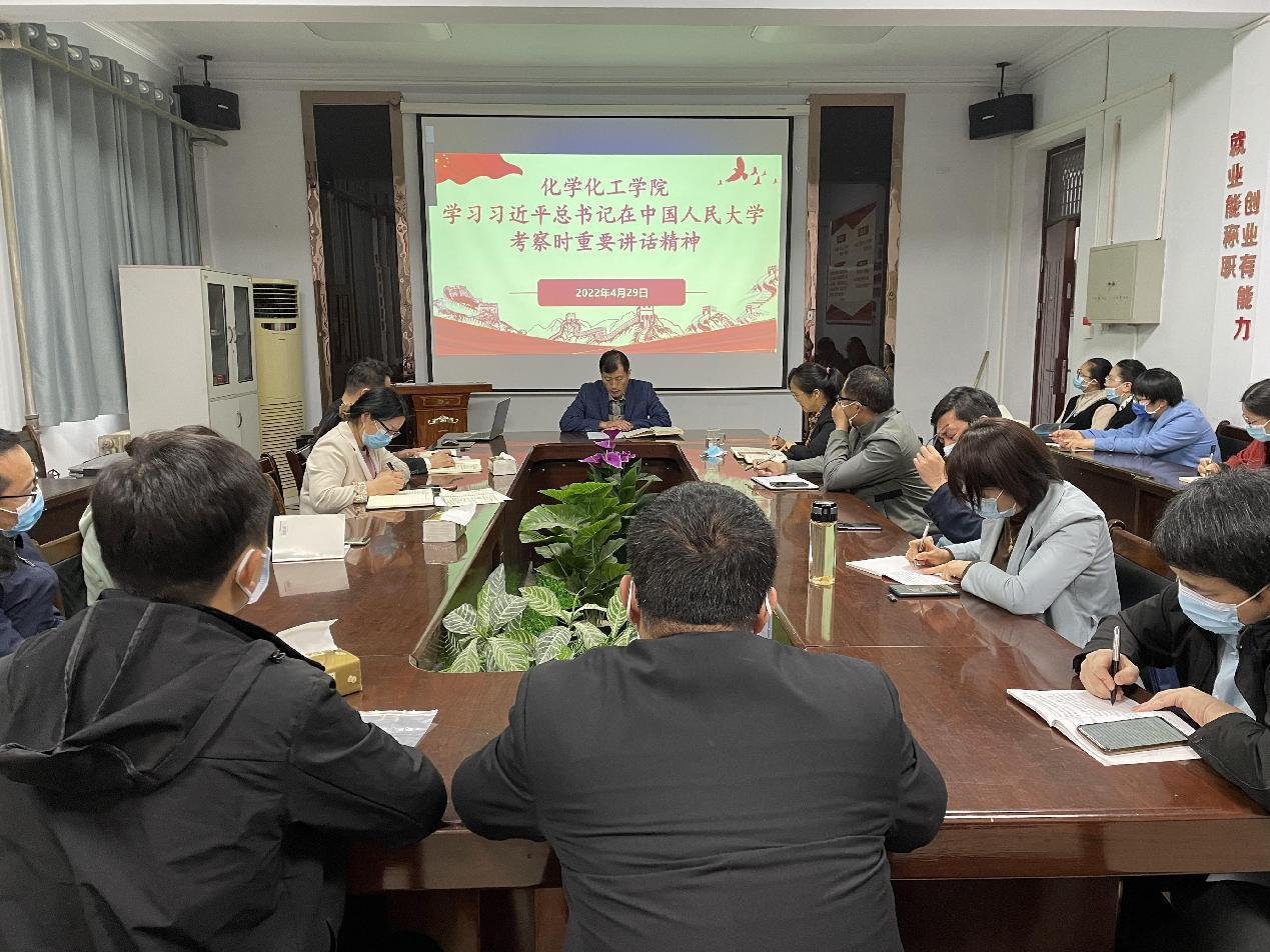 4月29日下午,麻豆精品㊙️国产传媒AV组织全体教职工理论学习会议,会议主题:学习习近平总书记在中国人民大学考察时的重要讲话精神。学院领导班子、各平台负责人、基层教学组织负责人、全体行政人员和辅导员在睢阳校区7号教学楼会议室进行线下学习,其他教师通过腾讯会议以线上形式学习。