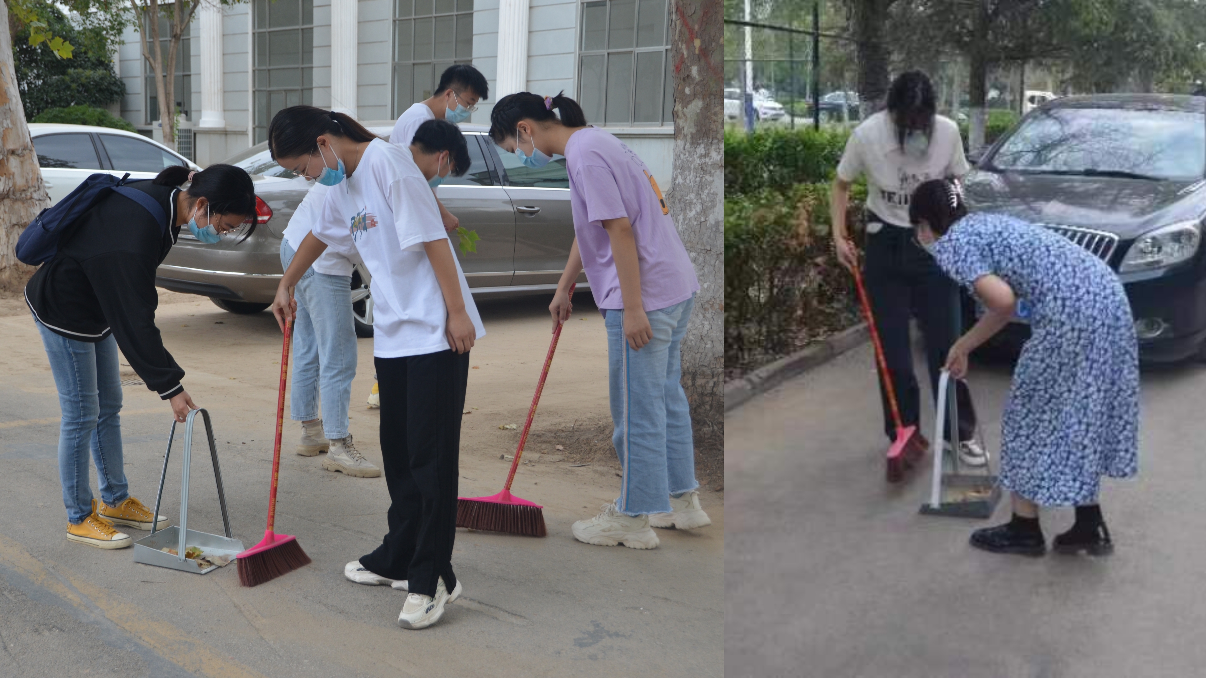 活动中,学生党员拿起劳动工具积极投身卫生清扫活动,清扫道路上、球场旁树叶、纸屑等垃圾,拔除杂草,摆放车辆,活动有序进行。大家一起动手、齐心协力,发扬不怕苦、不怕脏、不怕累的精神,为创造一个干净、整洁、舒适的校园环境而共同努力,以实际行动展现了党员的先锋模范作用。