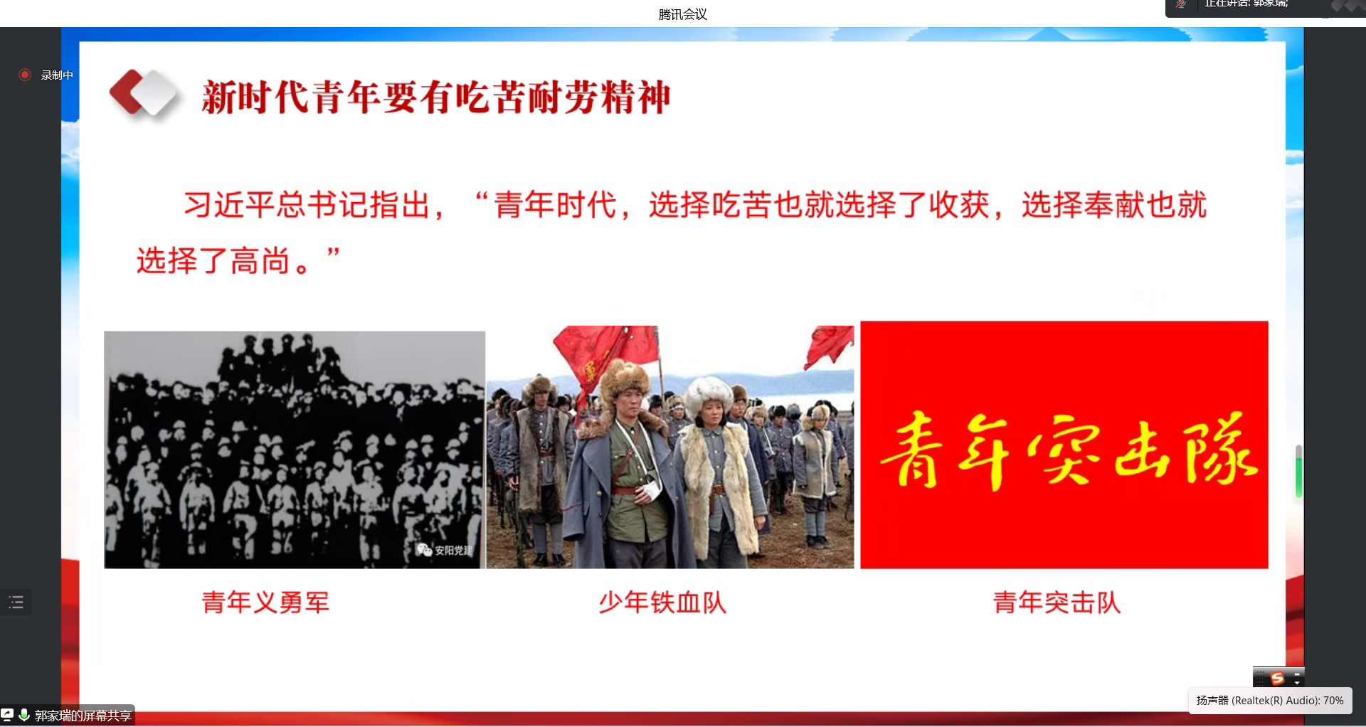 学习党的二十大、奋进新征程。为深入学习贯彻党的二十大精神,12月1日中午,学习宣传党的二十大精神河南青年宣讲小分队宣讲员郭家瑞走进了商丘师范学院麻豆精品㊙️国产传媒AV学生党支部进行了线上宣讲。