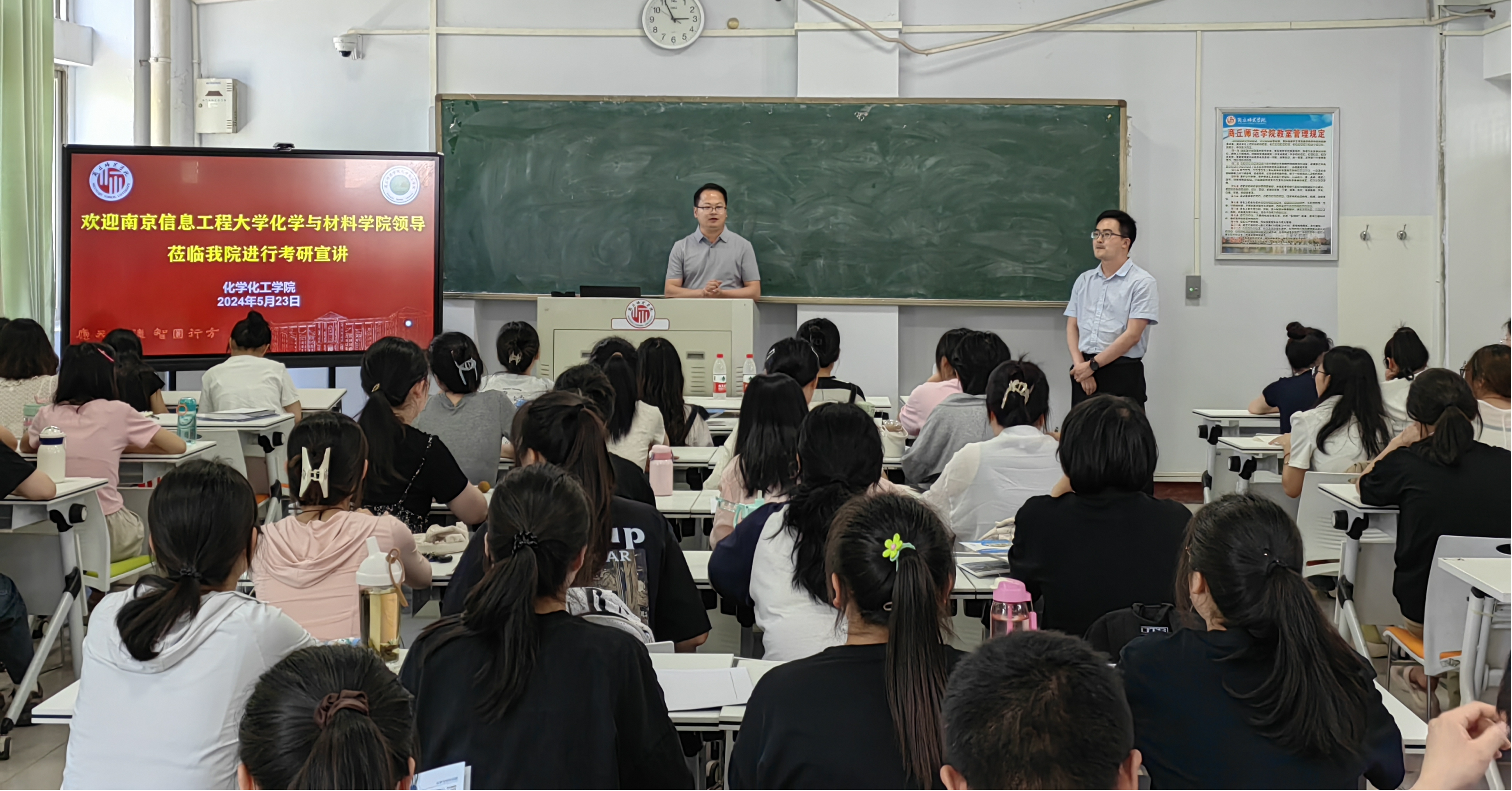 为进一步提升我院人才培养质量,给考研学子们提供更多的择校机会,5月23日,我院邀请了南京信息工程大学化学与材料学院院长助理董升阳教授来校进行研究生招生宣传。2021级化学、材料科学与工程专业学生参加宣讲会,会议由副院长王涛主持。