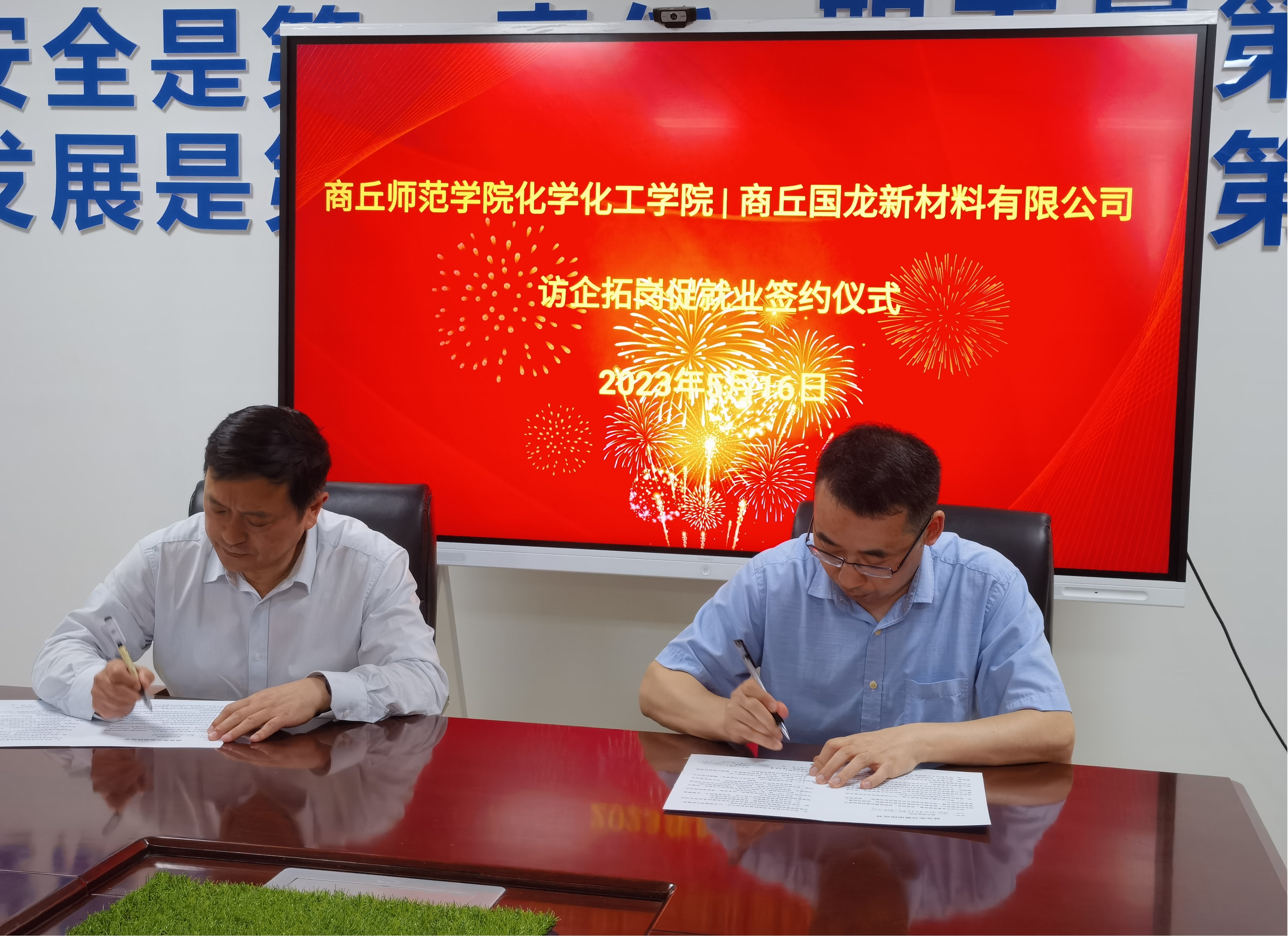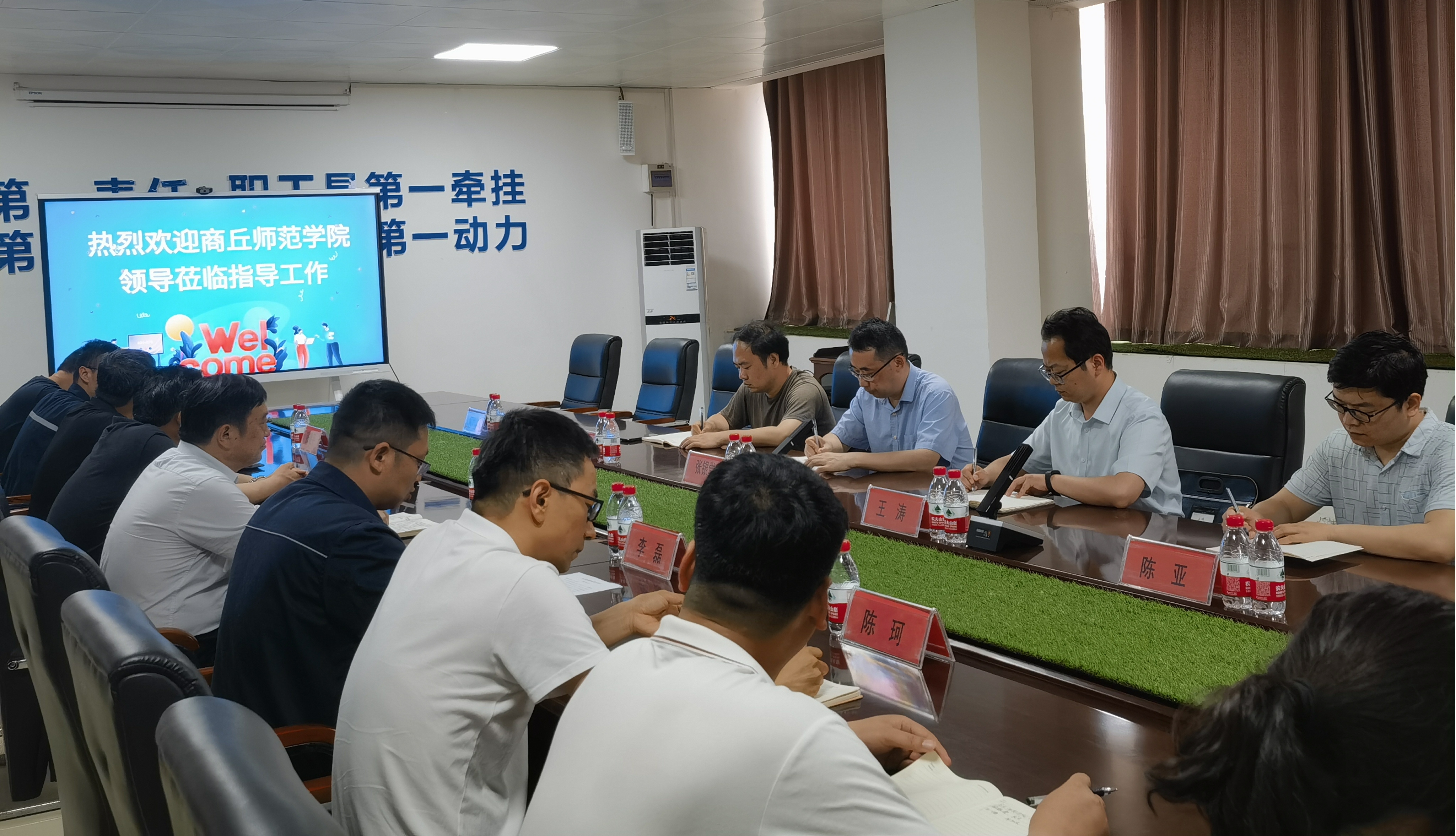5月16日,麻豆精品㊙️国产传媒AV院长张银堂、副院长王涛、光电功能材料河南省工程技术研究中心负责人张弛、材料系主任陈亚、党政办公室何尚华一行五人到商丘国龙新材料有限公司开展访企拓岗活动。