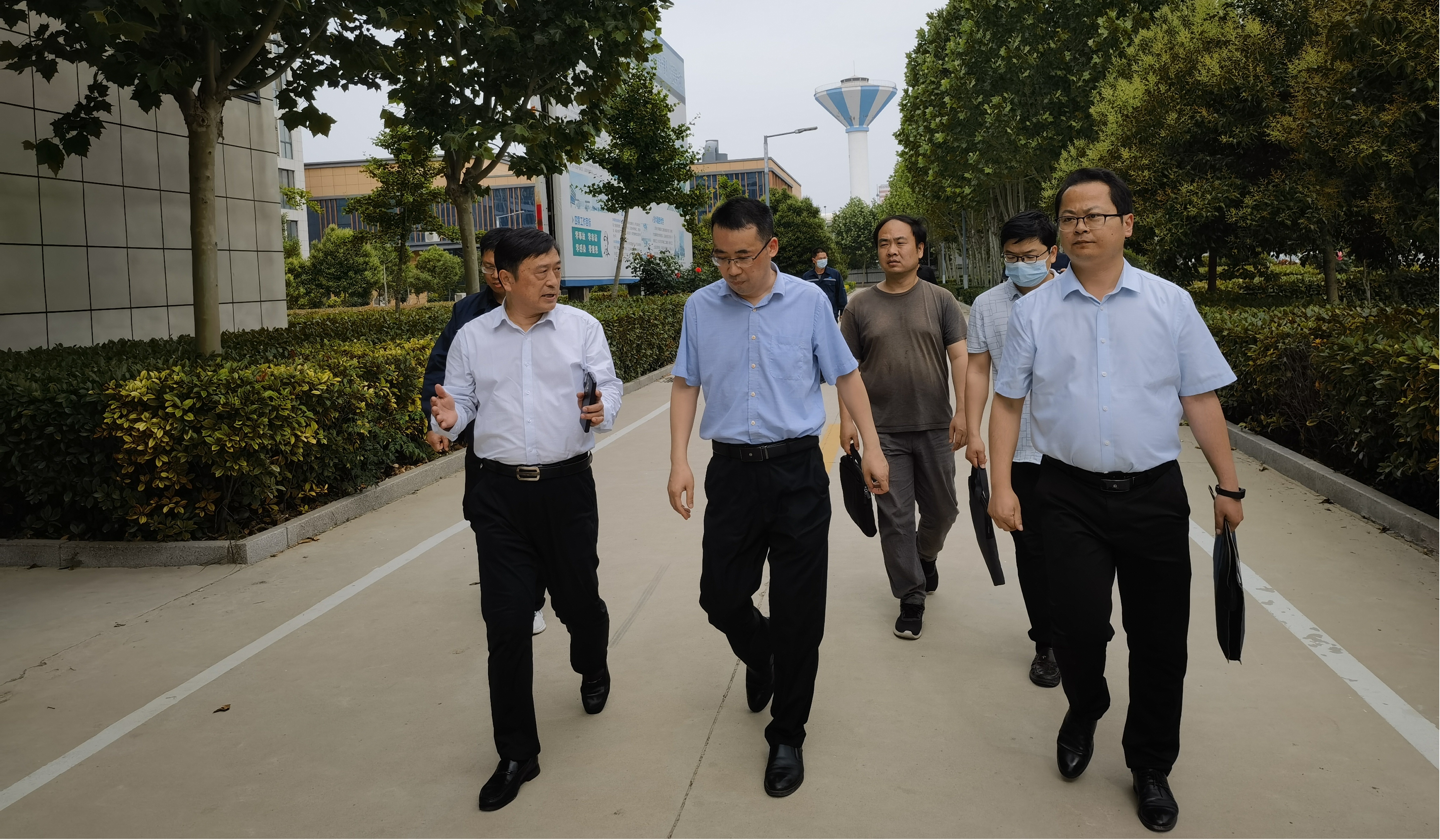 商丘国龙新材料有限公司董事长郭凯等同志陪同张银堂一行参观了中控室、生产线,并介绍了公司基本情况、发展历程、产品研发以及人才需求等情况。